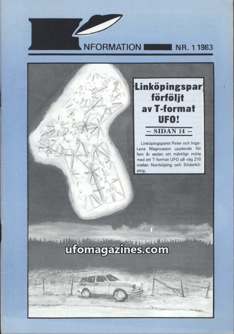This issue of UFO-Information covers several UFO sightings and encounters, including a notable T-shaped UFO incident in Sweden in 1975 involving Peter and Inga-Lena Magnusson. It a