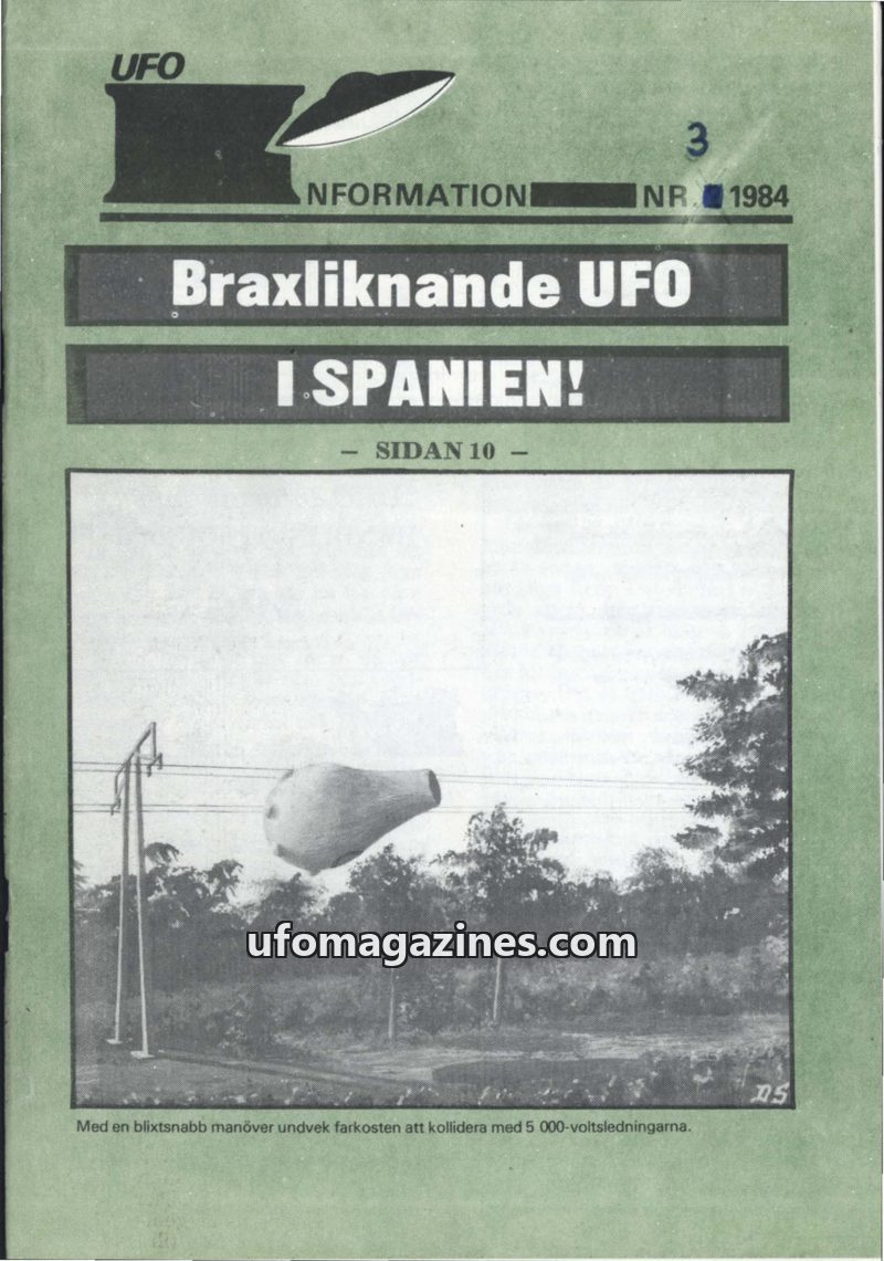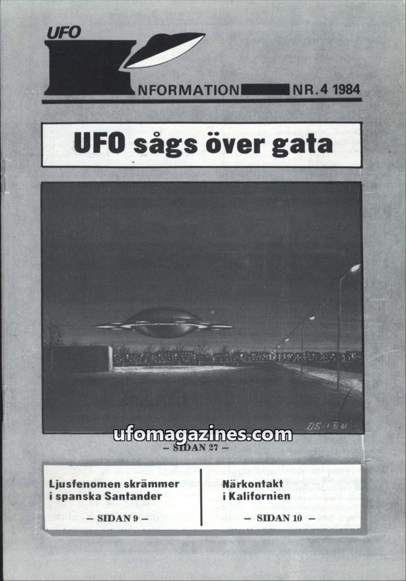 This issue of UFO Information from 1984 covers various UFO sightings and unexplained phenomena. It includes reports of UFOs seen over streets in Sweden, mysterious lights in Spain,
