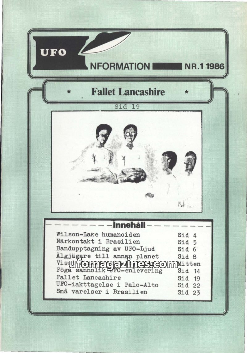 This issue of UFO INFORMATION from 1986 delves into various UFO phenomena and encounters. It features the 'Lancashire Case' with an account of Albert Lancashire's encounter in 1942