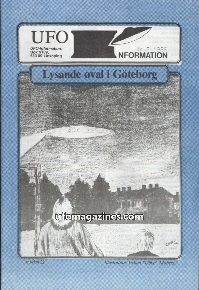 This issue of UFO Information covers various UFO sightings and related phenomena from around the world. It includes reports of a luminous oval in Gothenburg, a mysterious death in