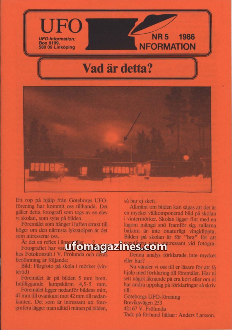 This issue of UFO-Information delves into several perplexing cases, including the Anundsjöstenen, a mysterious metallic object found in Sweden. It features accounts of alien encoun