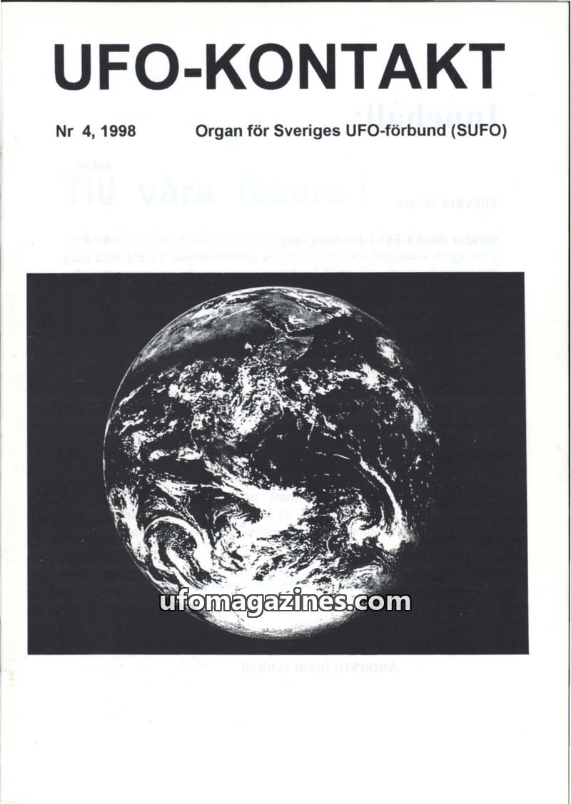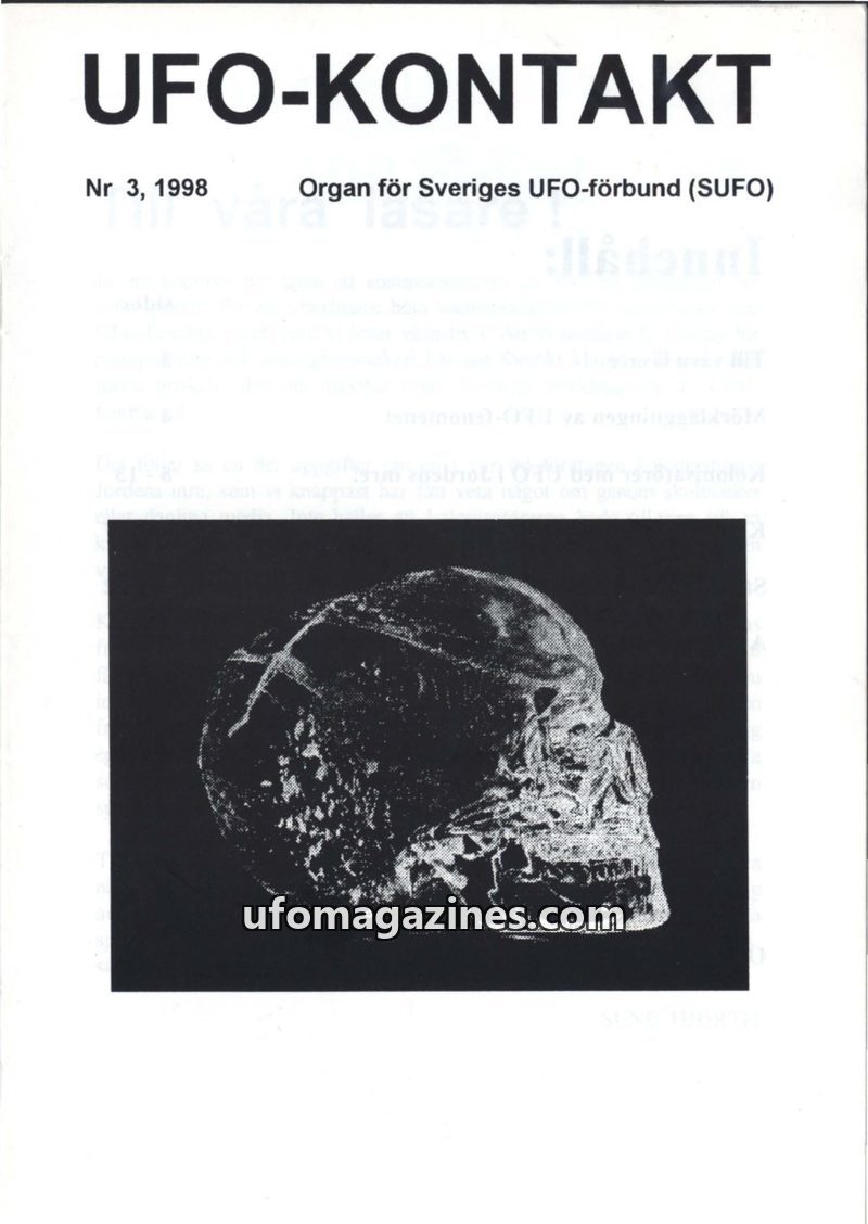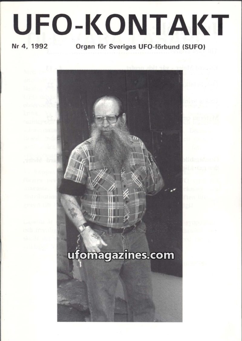 This issue of UFO-Kontakt, published in 1992, serves as the organ for the Swedish UFO-forbund (SUFO). It highlights the organization's goal to inform the public about evidence of h