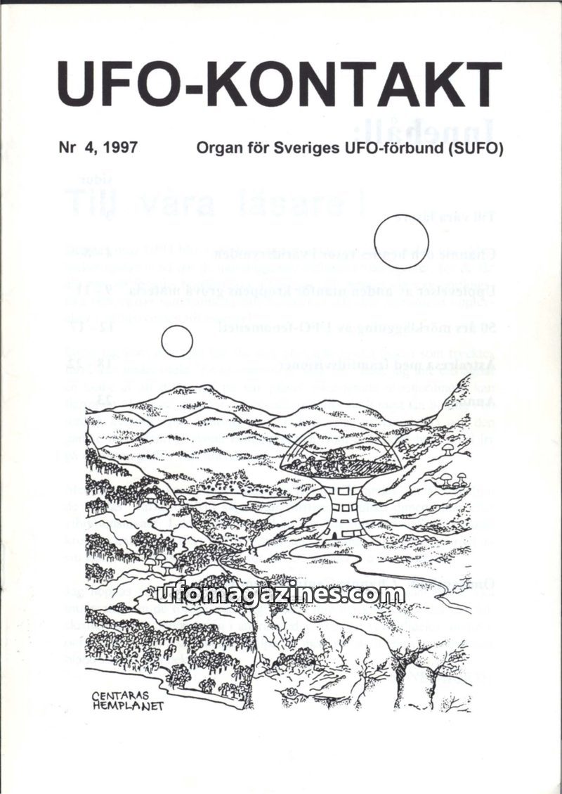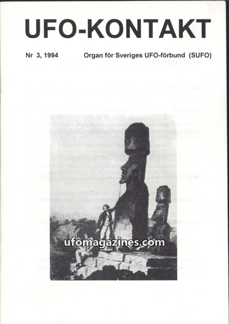 This issue of UFO-KONTAKT, published by the Swedish UFO Federation (SUFO) in 1994, delves into spiritual and social issues from an extraterrestrial perspective. It reinterprets tea