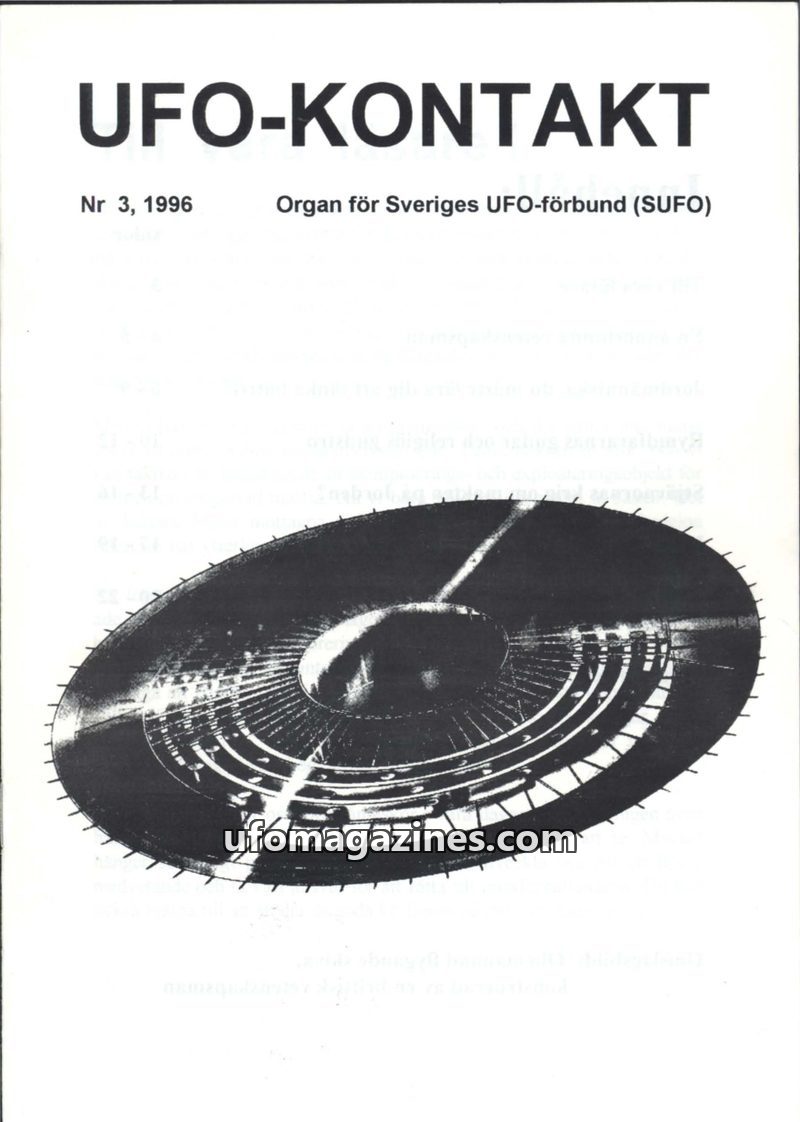 This issue of UFO-KONTAKT delves into various aspects of the UFO phenomenon and related topics. It highlights the work of inventor John Searl and his free-energy flying disk techno