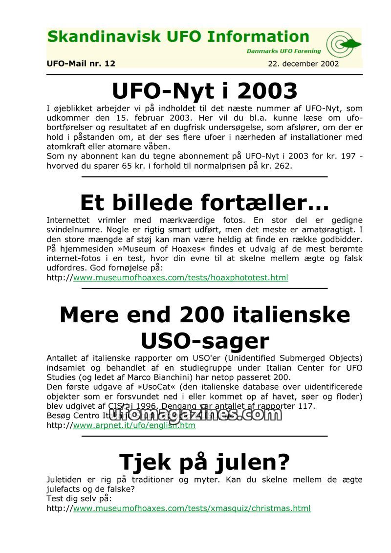 This issue of Skandinavisk UFO Information, dated December 22, 2002, announces that the next issue of UFO-Nyt will be released on February 15, 2003, and will cover UFO abductions a