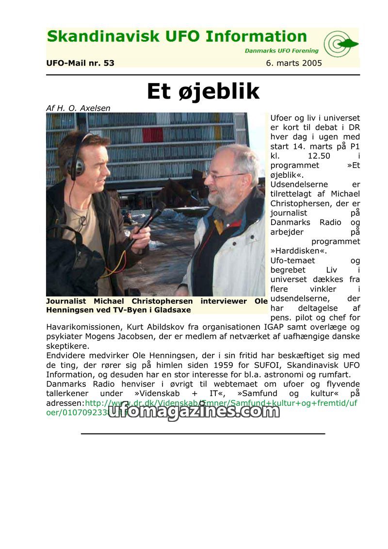 This issue of Skandinavisk UFO Information from March 2005 covers a range of topics including a radio debate on UFOs and life in the universe, a lecture on solar system exploration