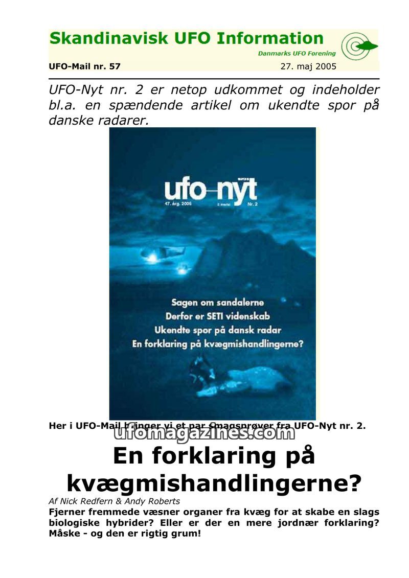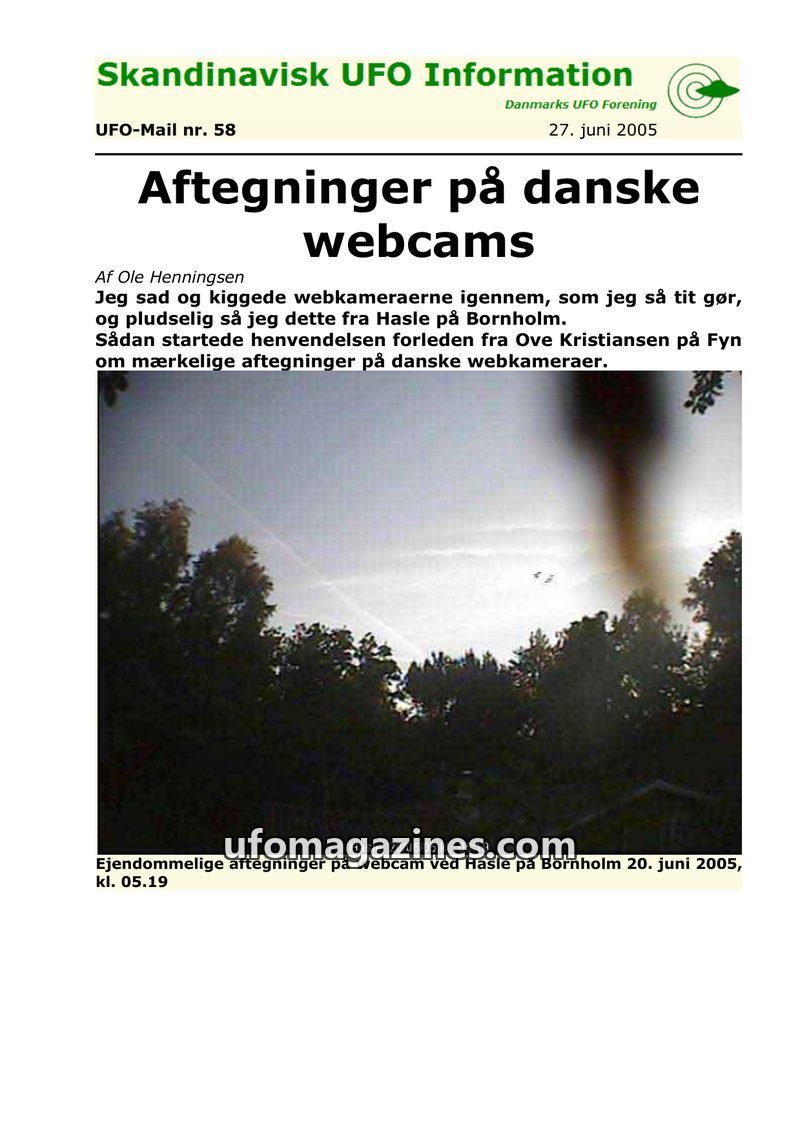 This issue of Skandinavisk UFO Information investigates unusual markings captured by Danish webcams, initially thought to be UFOs but ultimately identified as birds. It also revisi