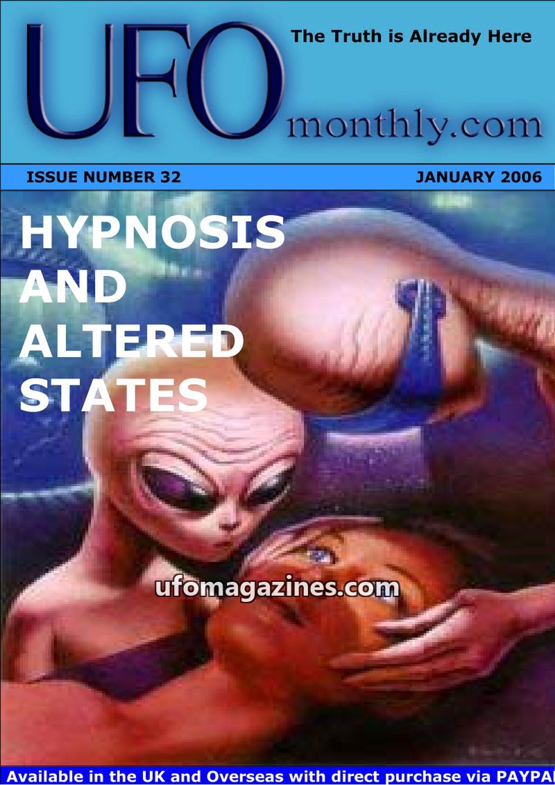 This issue of UFO Monthly focuses on the intersection of hypnosis, altered states of consciousness, and UFO abduction experiences. It delves into the psychological aspects, includi