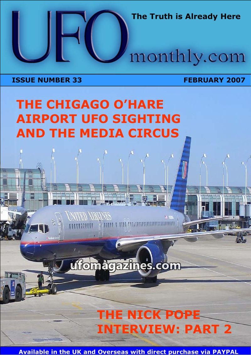 This issue of UFO Monthly.com focuses on the November 7, 2006, sighting at Chicago O'Hare Airport, detailing witness accounts from aviation professionals and the subsequent media c