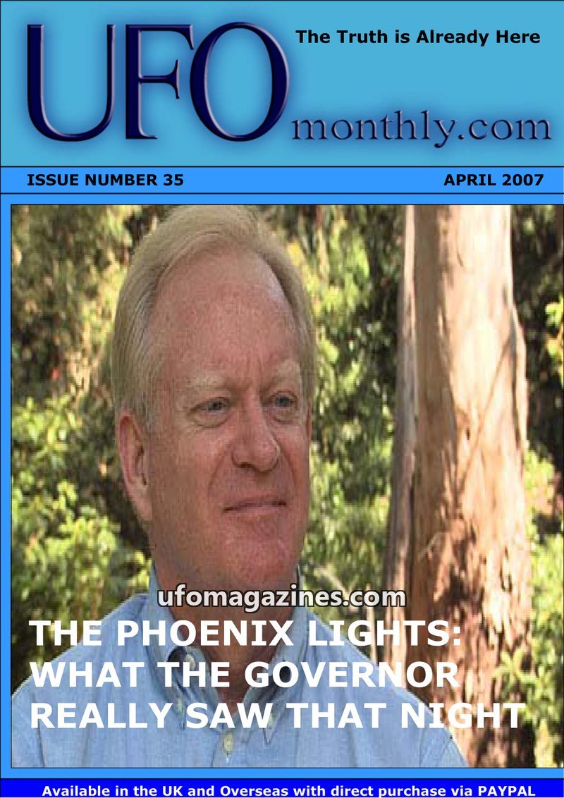 This issue of UFO monthly.com features an in-depth look at the Phoenix Lights incident, questioning what Governor Fife Symington truly saw. It also details the development of a new