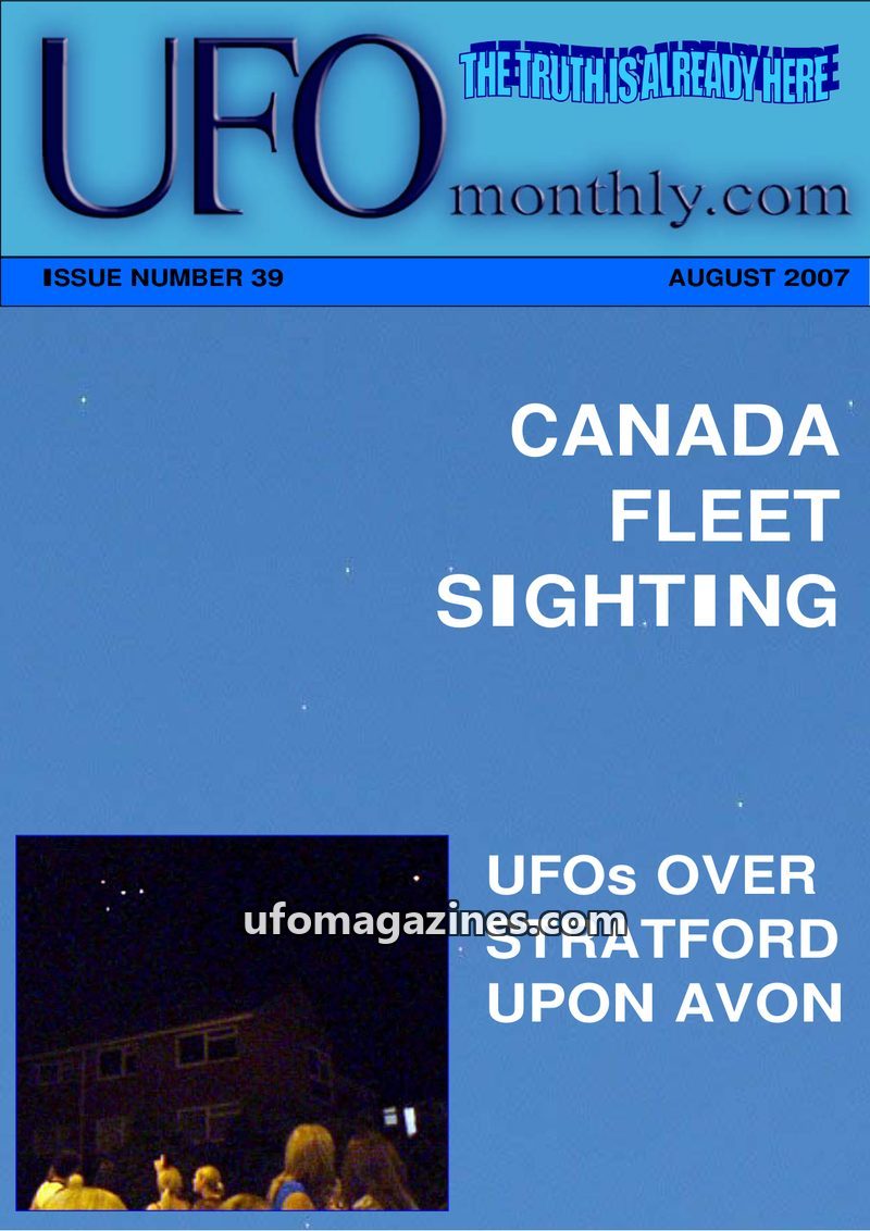 This issue of UFO Monthly.com (Issue 39, August 2007) features a cover story on a 'Canada Fleet Sighting' and 'UFOS OVER STRATFORD UPON AVON'. The magazine includes an interview wi