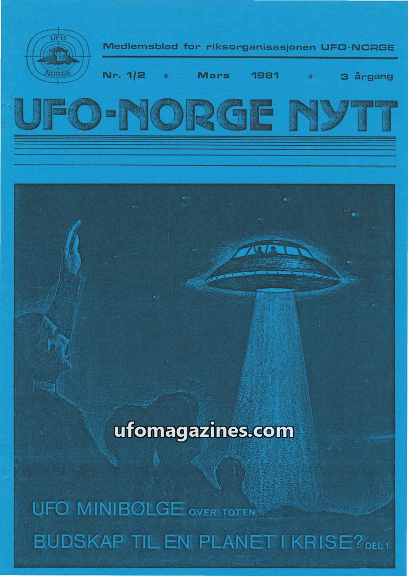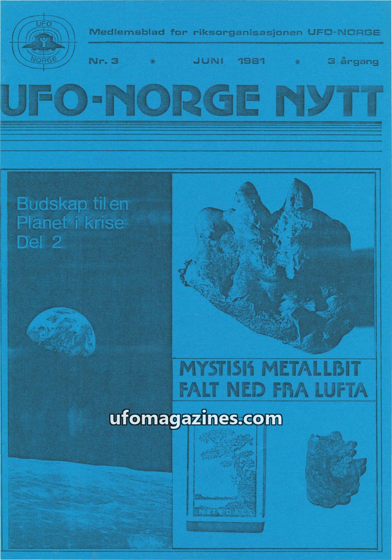 This issue of UFO-NORGE NYTT announces the merger of Norsk UFO Center and UFO-Norge into a new, larger organization. It discusses the 'message to a planet in crisis,' suggesting ex
