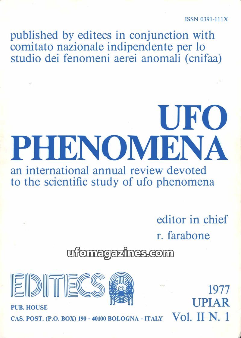 This issue of UFO Phenomena, Vol. III N. 1 (1978/1979), published by Editecs, is an international annual review focused on the scientific study of UFO phenomena. The editorial disc
