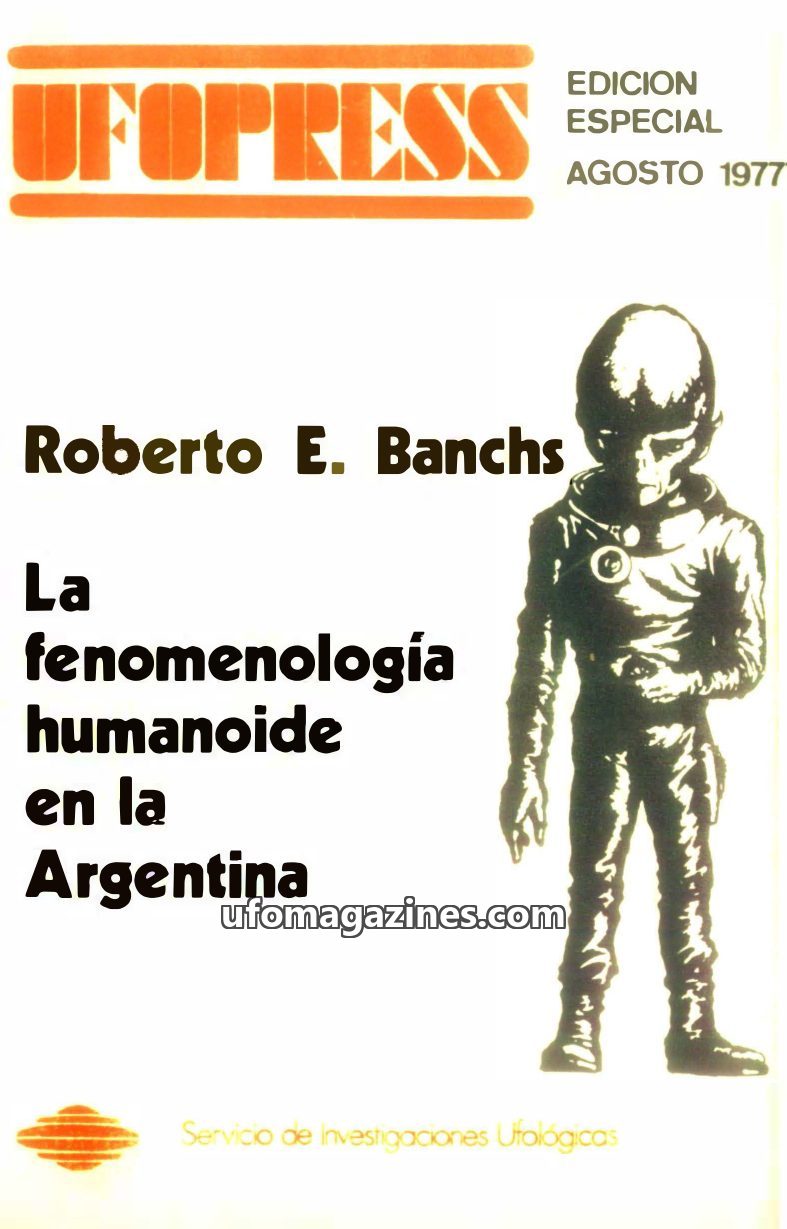 This special edition of UFOPRESS, published in August 1977, focuses on the humanoid phenomenon in Argentina, authored by Roberto E. Banchs. It presents a catalog of significant UFO