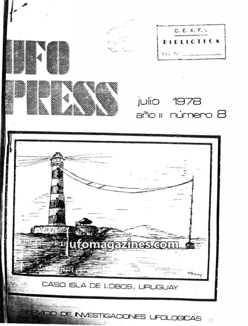 This issue of UFO PRESS from July 1978 focuses on UFO phenomena, particularly the 'Caso Isla de Lobos, Uruguay' and an in-depth article by Emilio F. Caldevilla on 'Emitting and Rec