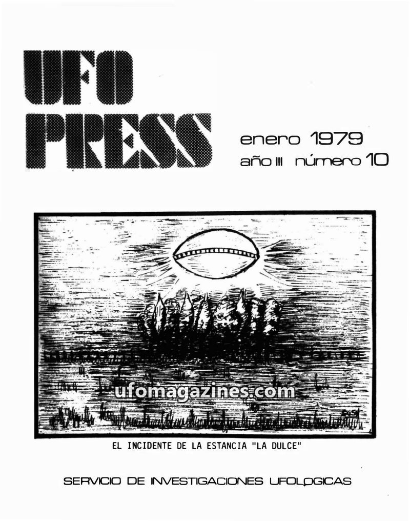 This issue of UFO PRESS from January 1979 covers the 'La Dulce' incident in Argentina, detailing witness testimony and object characteristics. It also explores the psychological an