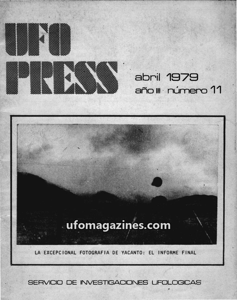 This issue of UFO PRESS, dated July 1979, focuses on a detailed account of a UFO encounter in Huaco, Argentina, on December 11-12, 1972. Four witnesses reported observing a luminou