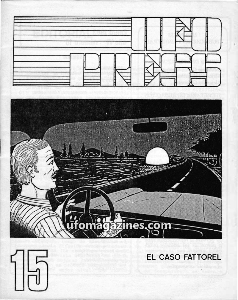 This issue of UFO PRESS details the 'Caso Fattorel,' an incident from February 1982 where Juan Fattorel reported seeing a hovering UFO, experiencing a loss of consciousness, and wa