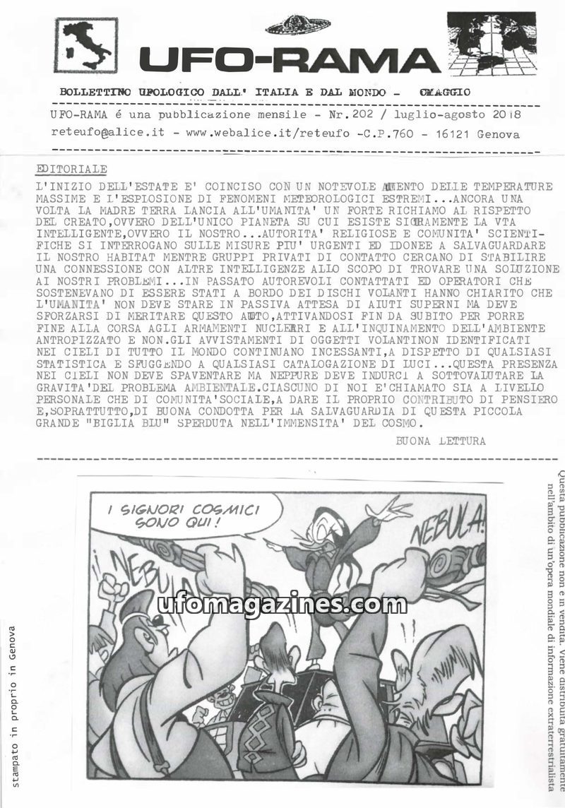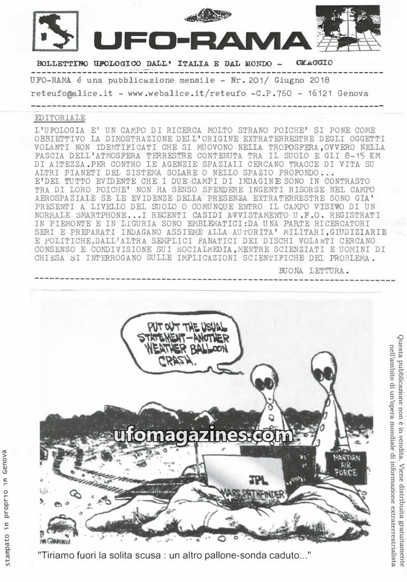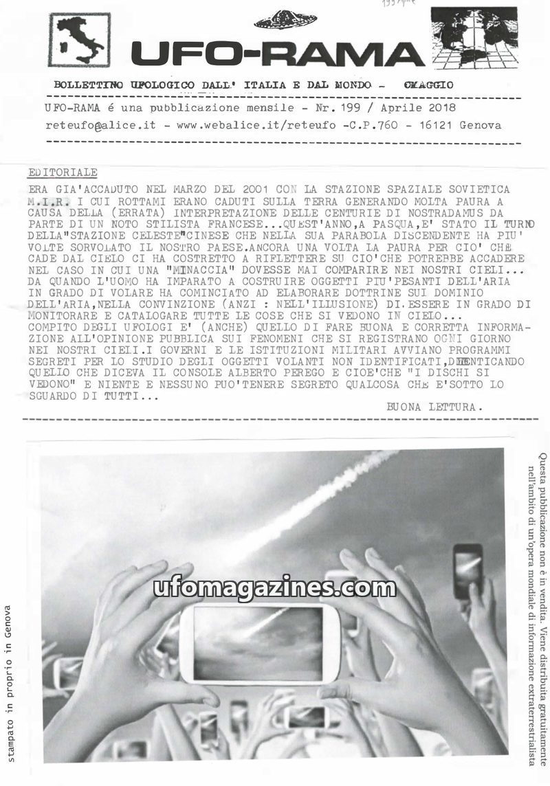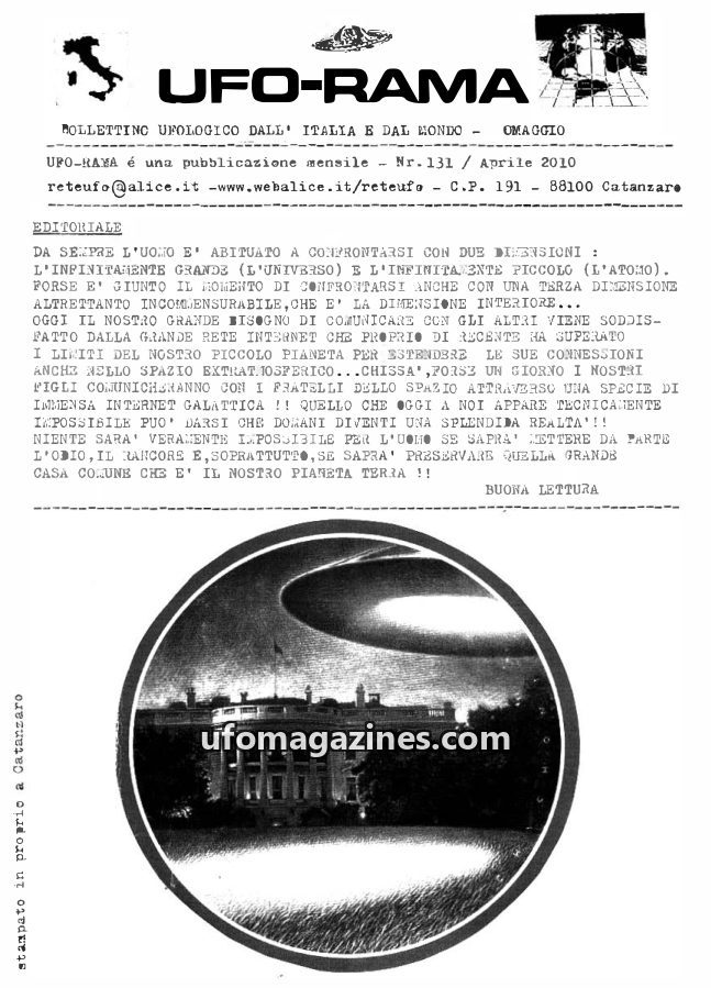 This issue of UFO-RAMA focuses on recent UFO sightings across Italy, including a mysterious dance of lights over the Tyrrhenian Sea, red spheres seen in Crespellano, and luminous o