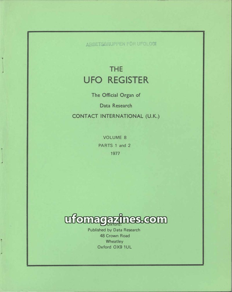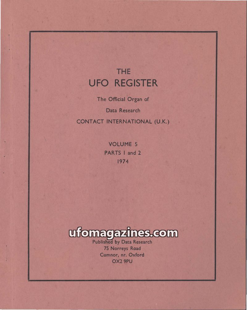 This issue of The UFO Register, Volume 5, Parts 1 & 2 from December 1974, amalgamates two normally separate parts due to the extensive coverage of the 1973 UFO wave. Data Research