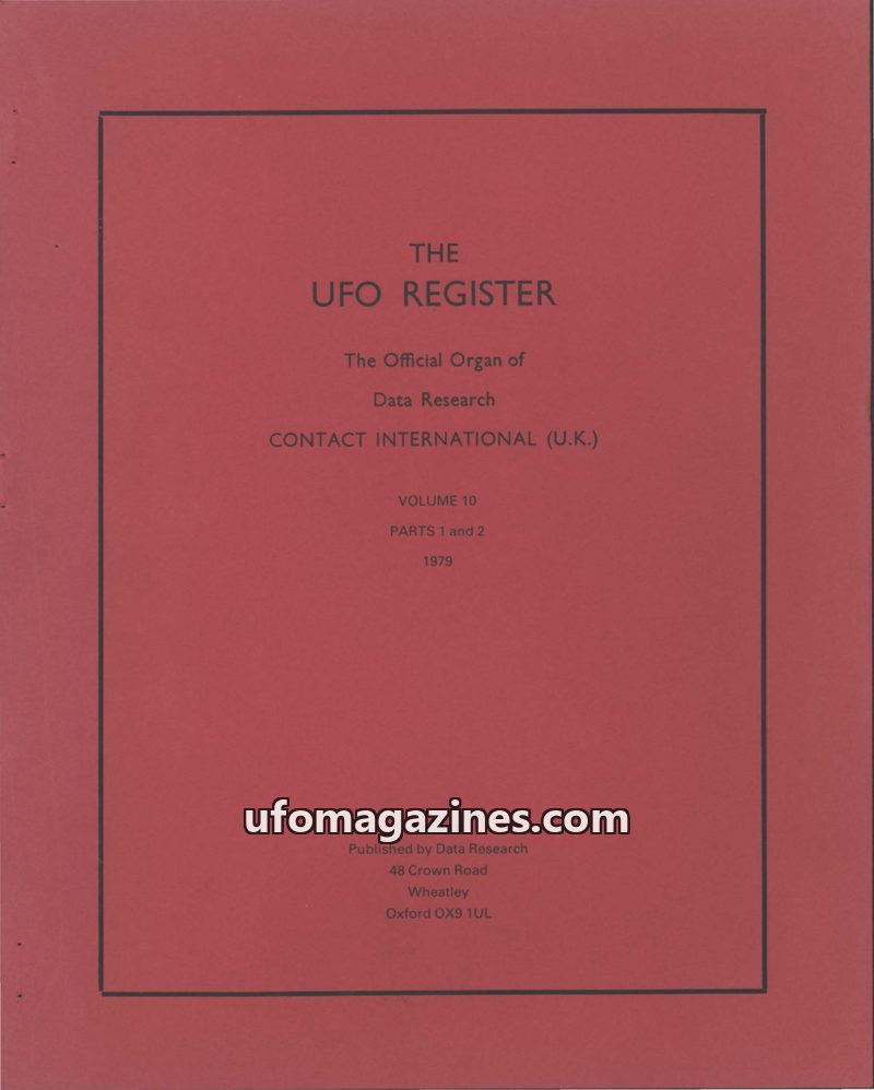 This issue of The UFO Register, Volume 10, Parts 1 & 2 from December 1979, published by Data Research, covers a range of UFO-related topics. It includes an article by Dr. J. Hurtak