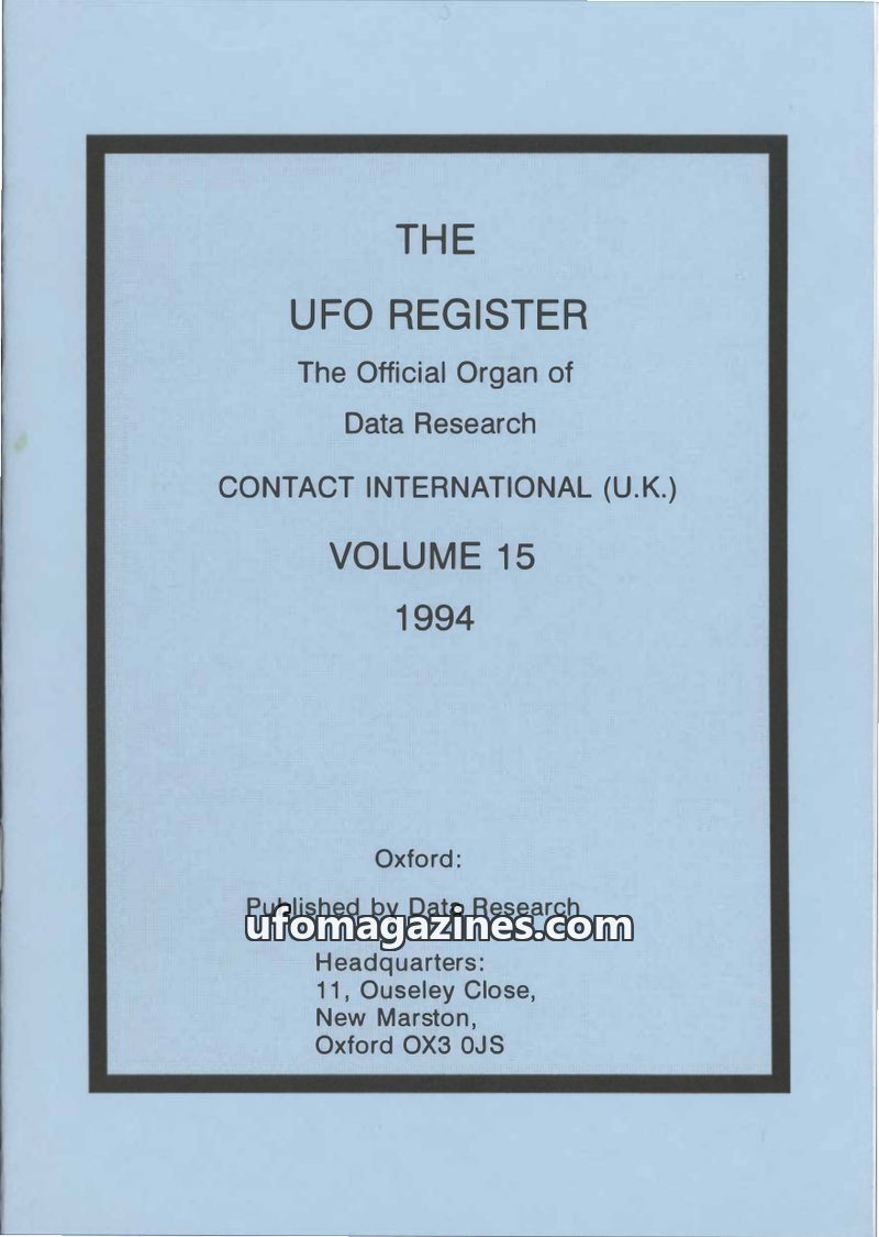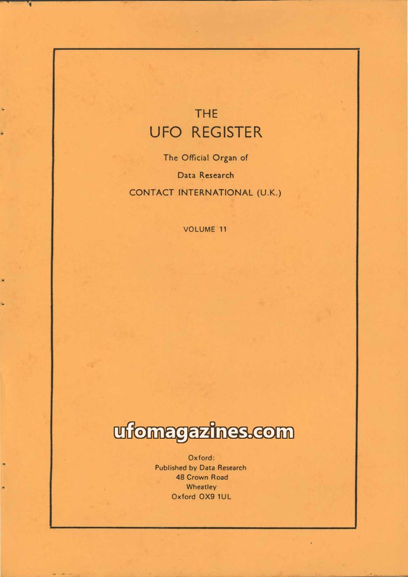This issue of The UFO Register, Volume 11, is an annual journal dedicated to recording and disseminating factual information about the UFO phenomenon. It presents a detailed catalo