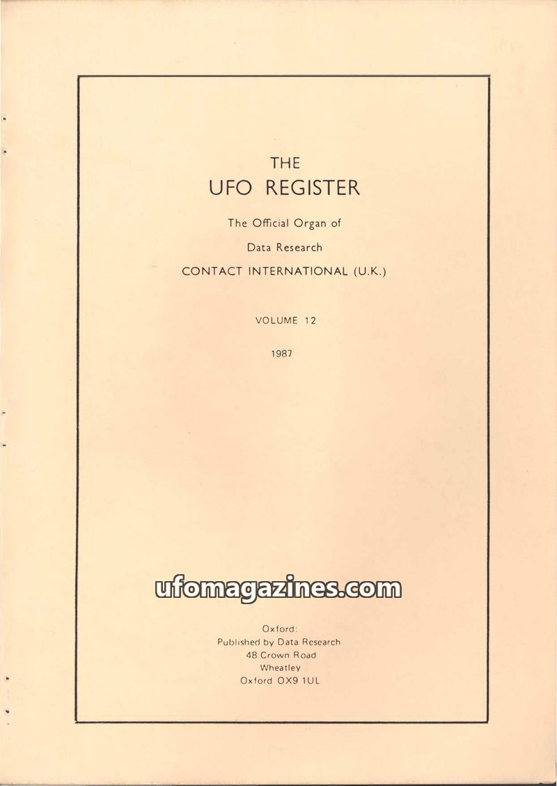 This issue of The UFO Register (Volume 12, 1987) provides an extensive catalogue of UFO shapes, detailing over 90 distinct forms reported by witnesses. It includes summaries of UFO