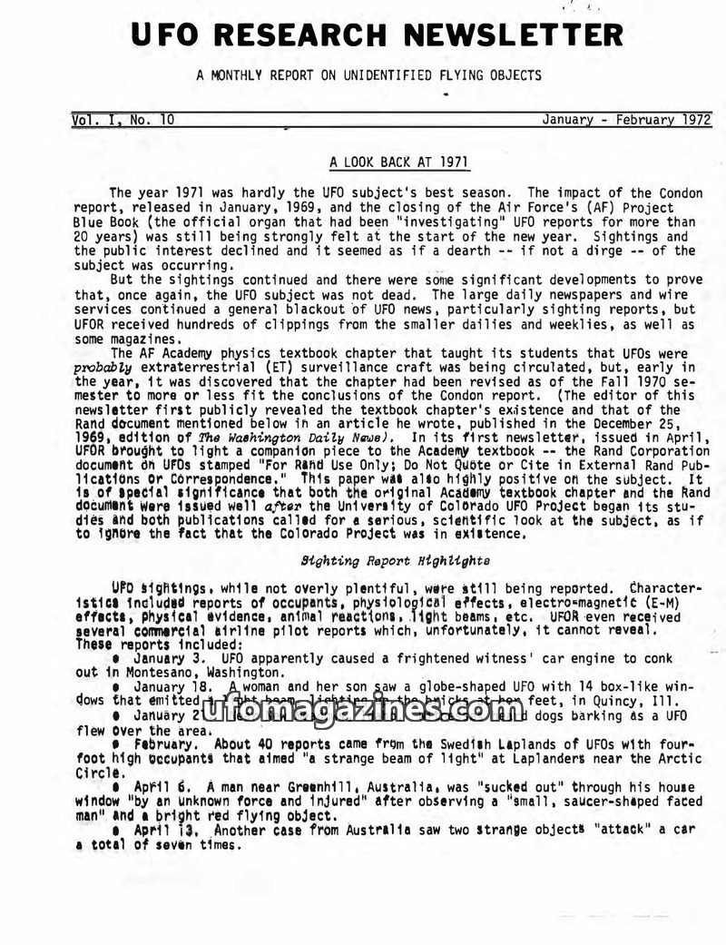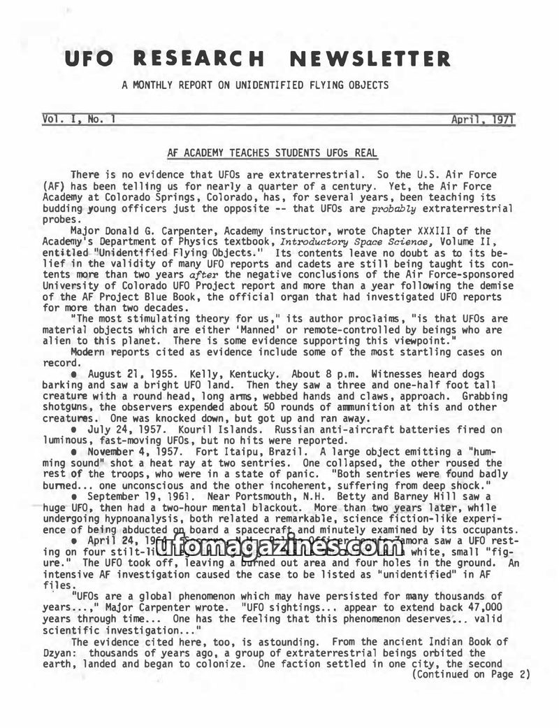 UFO Research Newsletter - 1971 04 - Vol 01 No 01