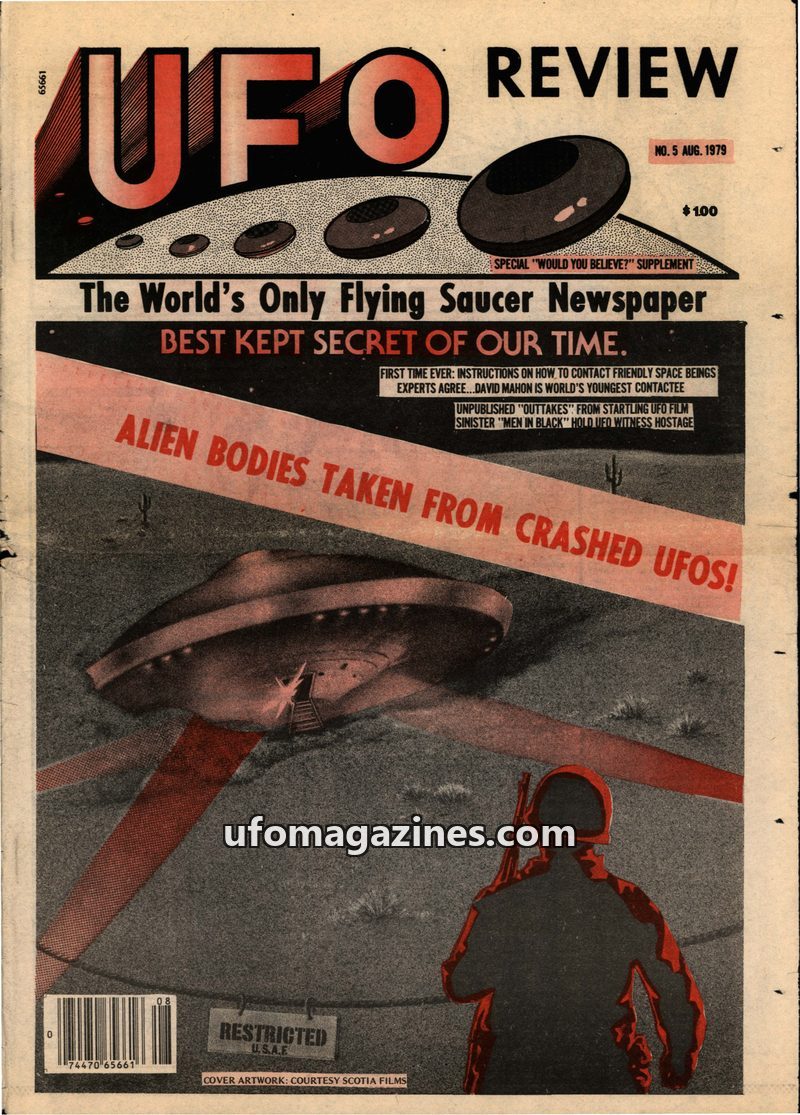 This issue of UFO REVIEW delves into suppressed government documents that allegedly prove the US possesses remains of UFOs and alien beings. It details numerous crashed UFO inciden