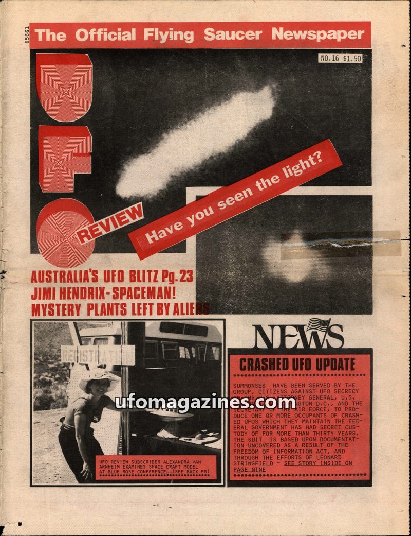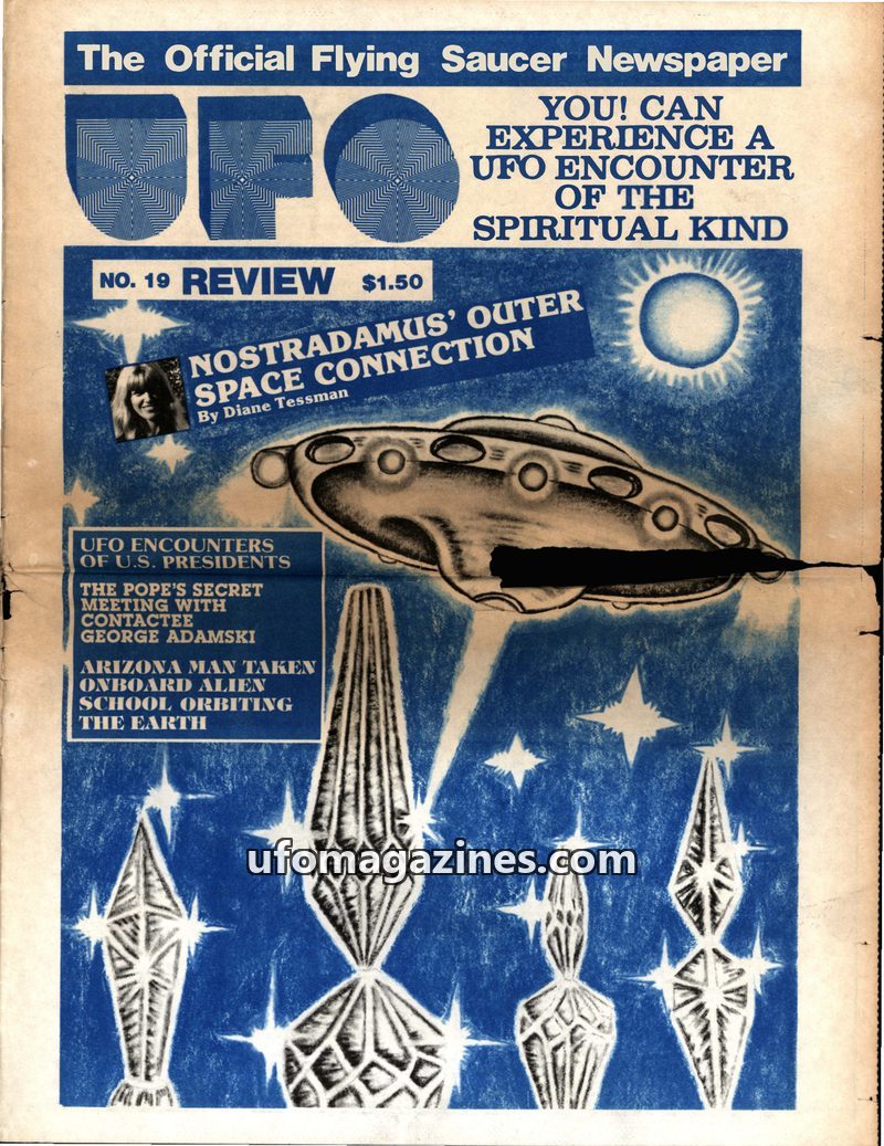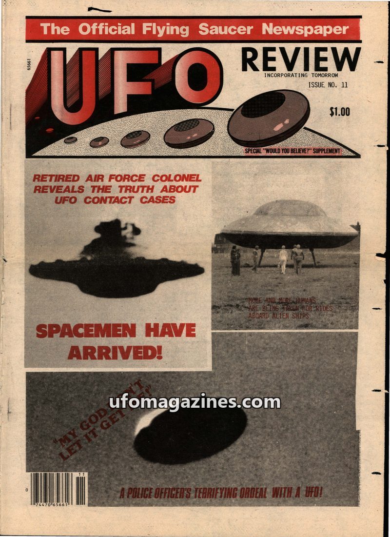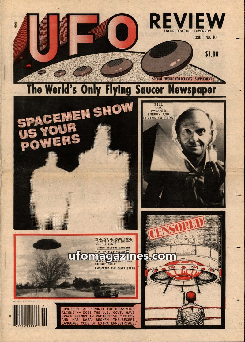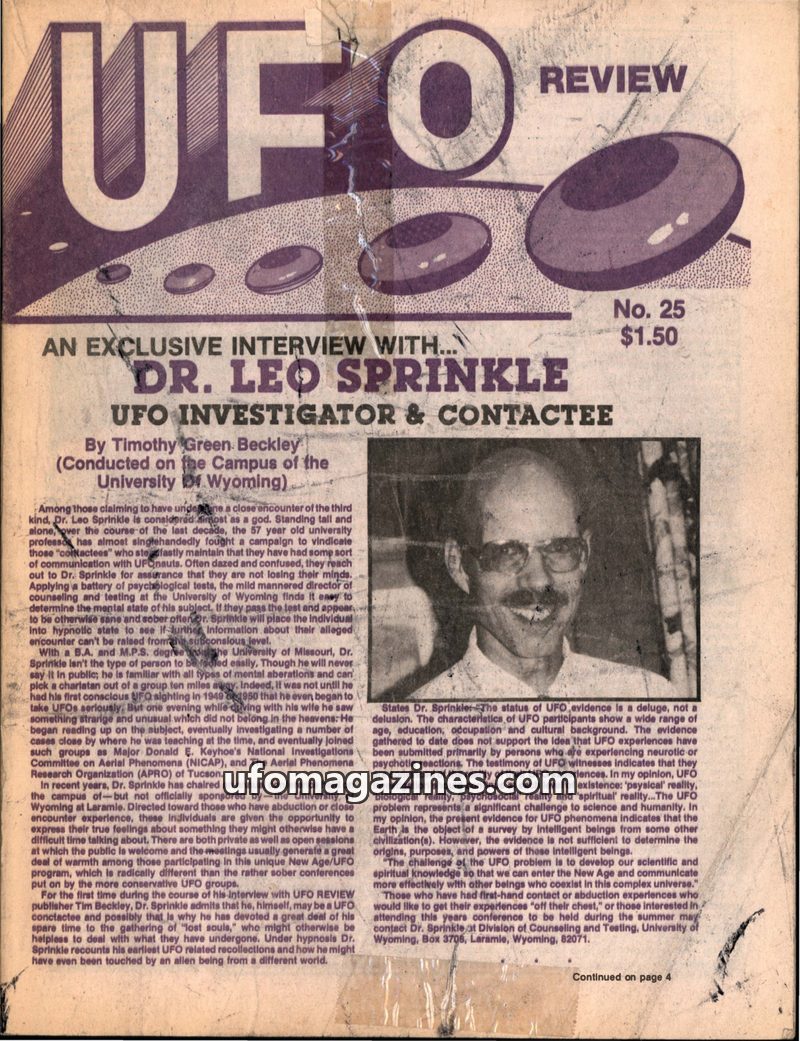 This issue of UFO Review features an exclusive interview with Dr. Leo Sprinkle, a UFO investigator and contactee who uses psychological tests and hypnosis to assess individuals cla