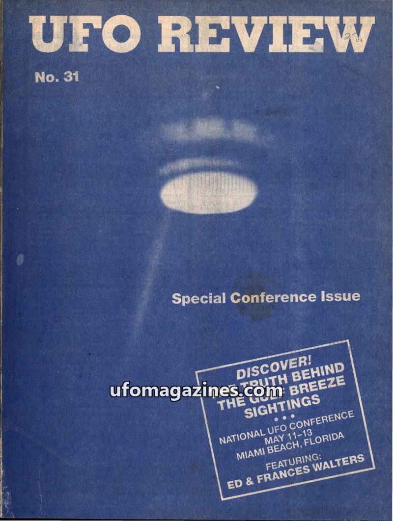 This issue of UFO Review (No. 31) is a Special Conference Issue focusing on the Gulf Breeze sightings, featuring Ed and Frances Walters. It highlights the controversy surrounding E