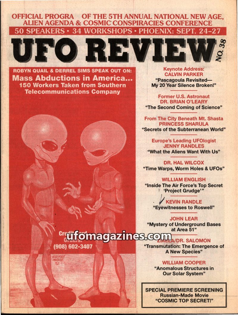 This issue of UFO Review focuses on the 5th Annual National New Age, Alien Agenda & Cosmic Conspiracies Conference held in Phoenix, Arizona, from September 24-27, 1993. It highligh