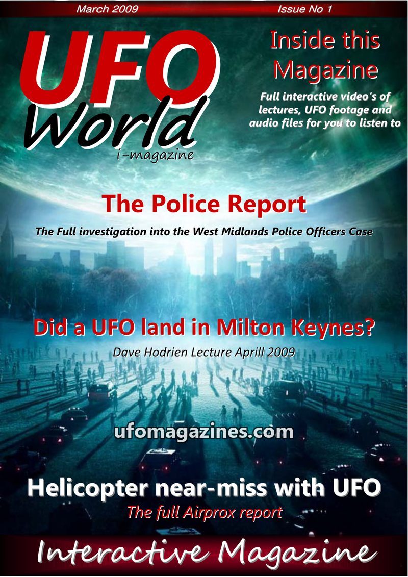This issue of UFO World i-magazine covers a range of UFO-related topics, including an investigation into a West Midlands Police case, a sighting in Milton Keynes, and a helicopter