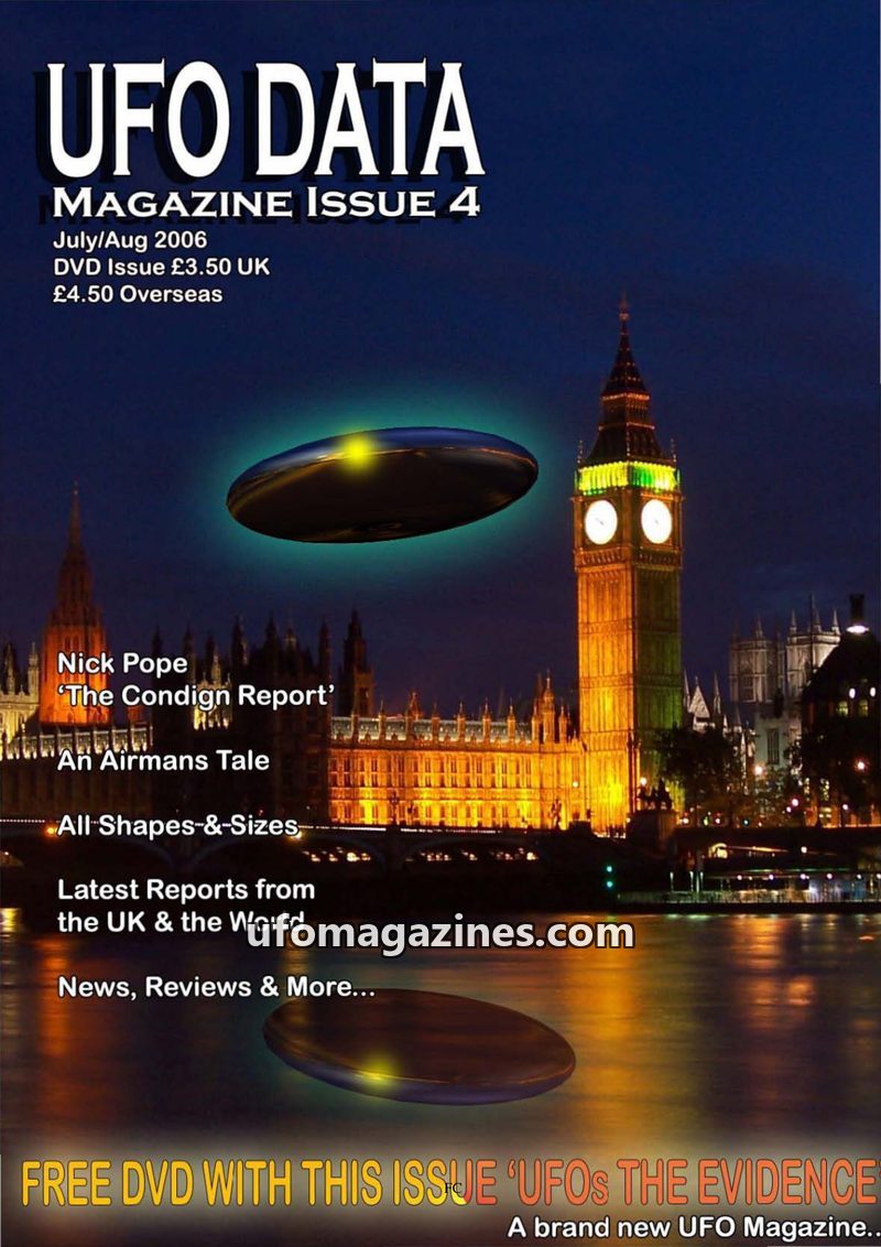 This issue of UFO DATA Magazine (Issue 4, July/Aug 2006) focuses on the release of the UK Ministry of Defence's 'Condign Report', a highly classified study on Unidentified Aerial P