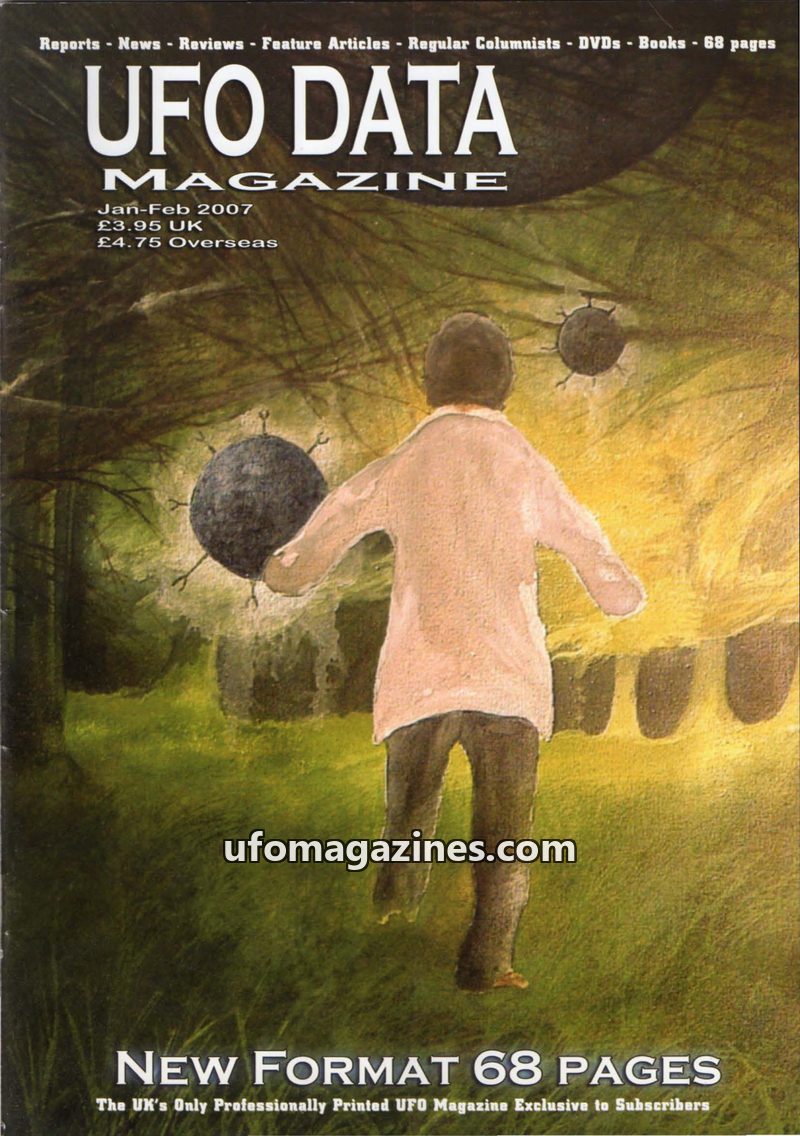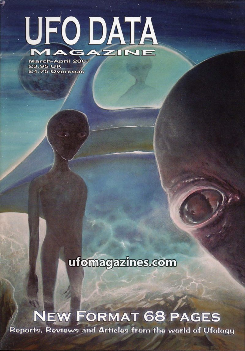 This issue of UFO DATA MAGAZINE, dated March-April 2007, features a new format with 68 pages. It includes reports on the Chicago O'Hare incident and a UFO crash in Iran's Kerman pr