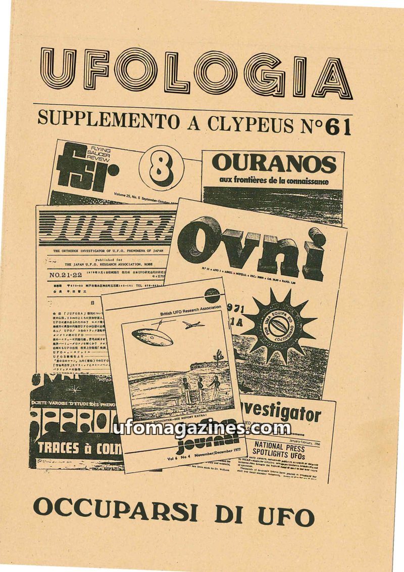 This issue of UFOLOGIA SUPPLEMENTO A CLYPEUS Nº61 presents a diverse range of articles on UFO phenomena. It includes discussions on the nature of ufology, a proposed new classifica