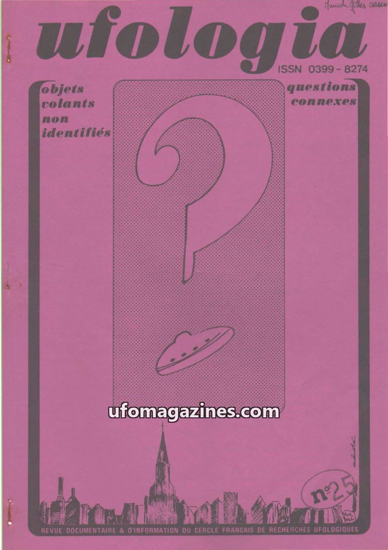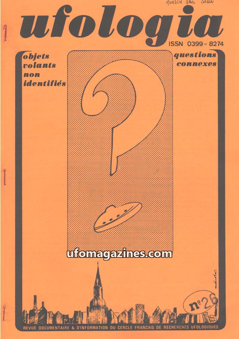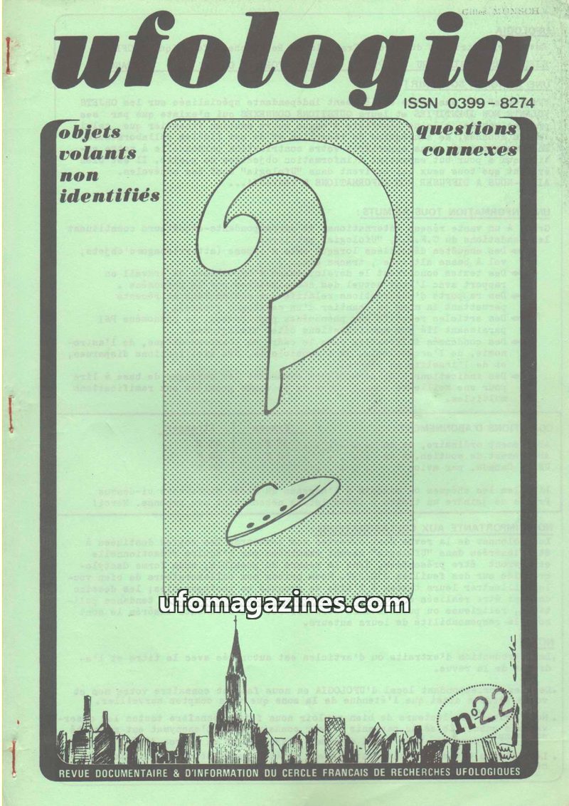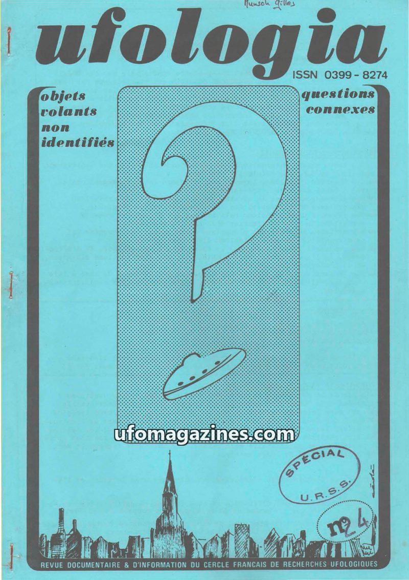 This issue of Ufologia, the quarterly review of the French Circle of Ufological Research (CFRU), focuses on unidentified flying objects and related questions. It includes articles