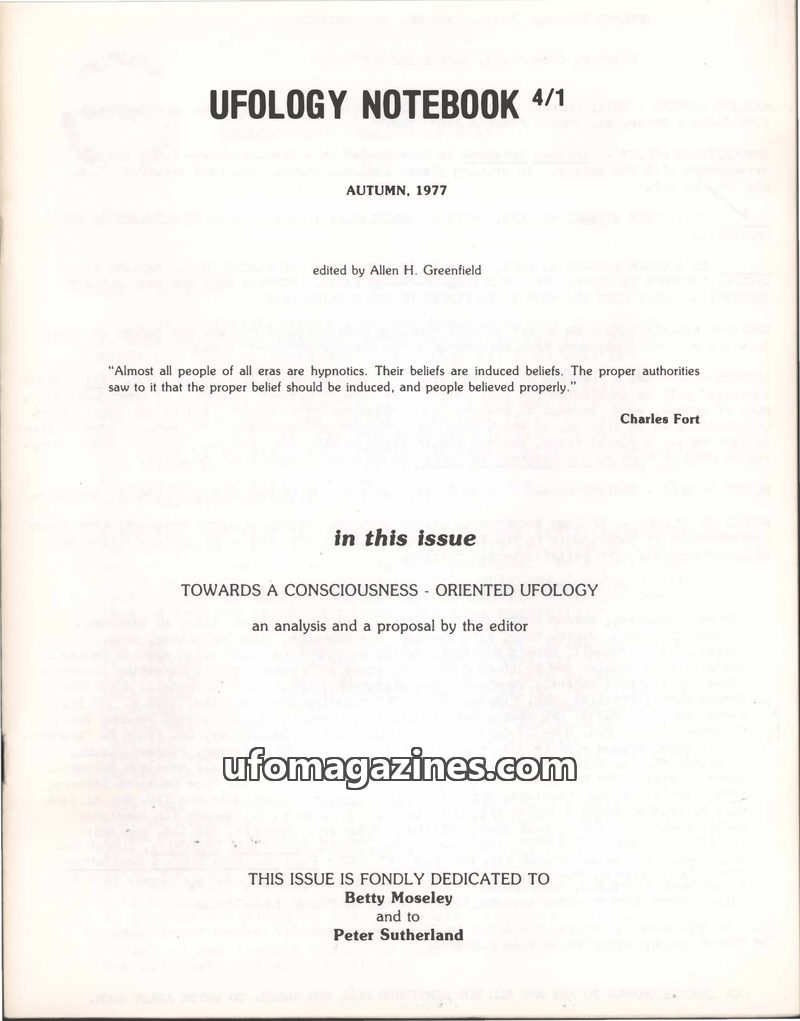 This issue of UFOLOGY NOTEBOOK, edited by Allen H. Greenfield, focuses on 'Towards a Consciousness-Oriented Ufology'. It explores the idea that reality, including UFO phenomena, ma