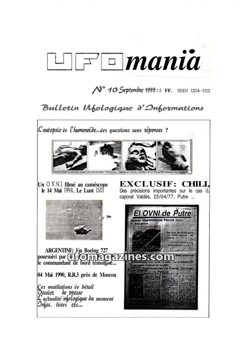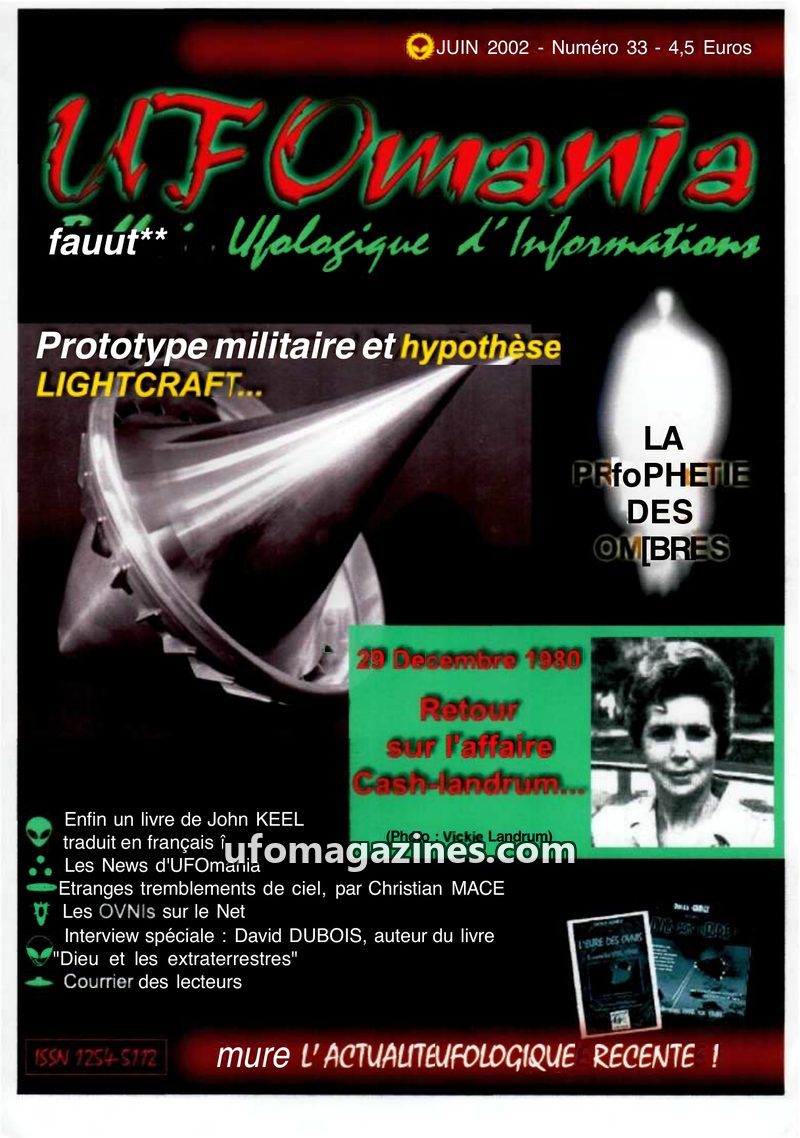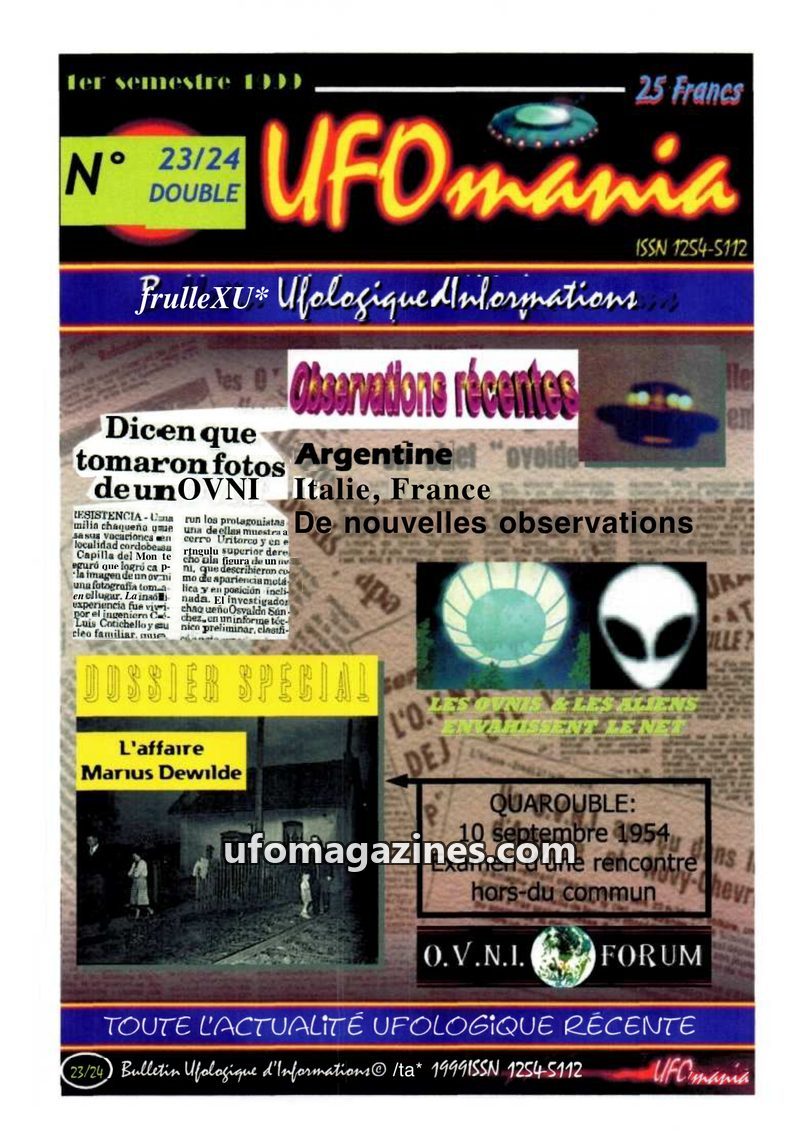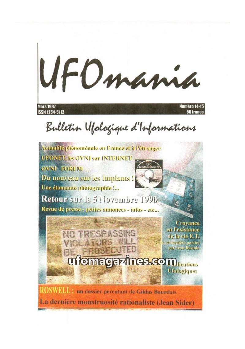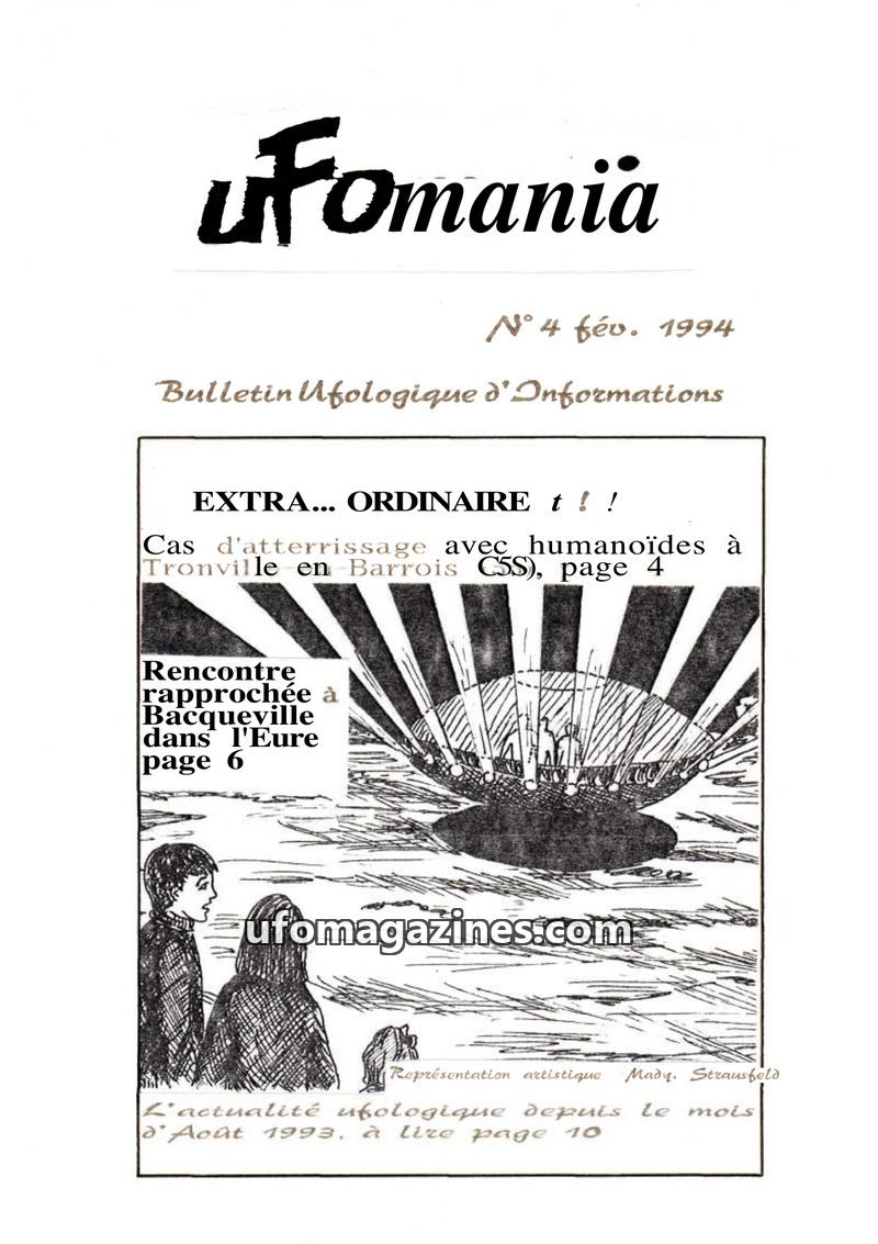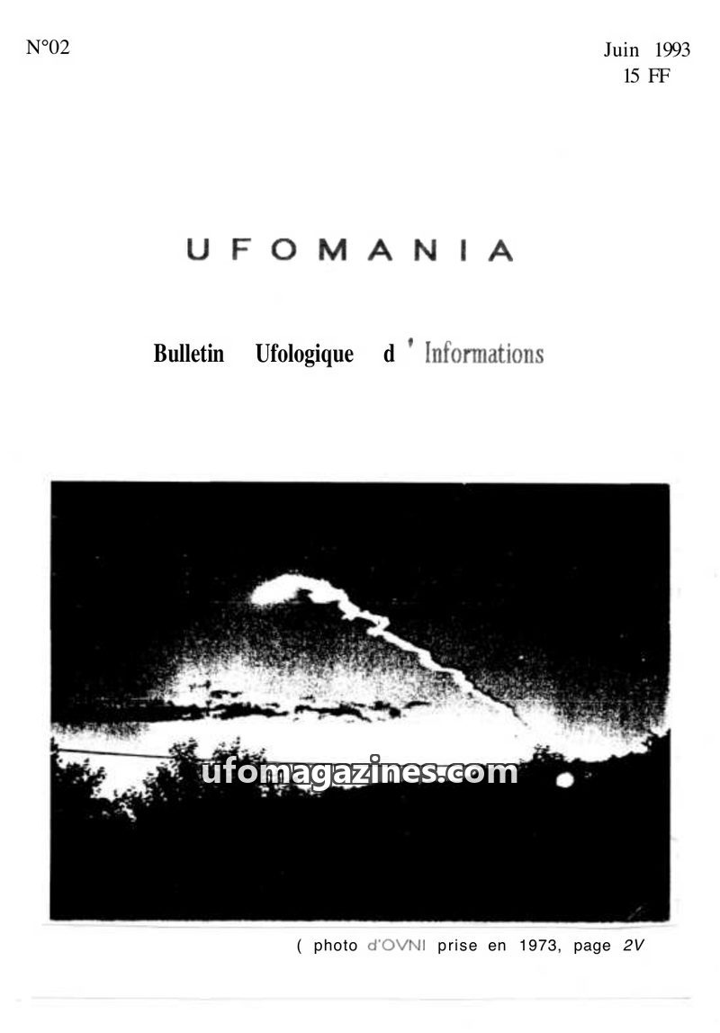 This issue of UFOMANIA (N°02, June 1993) features an in-depth investigation into a well-known 1954 UFO landing case in Vron, Somme, France, based on a counter-enquiry with witness