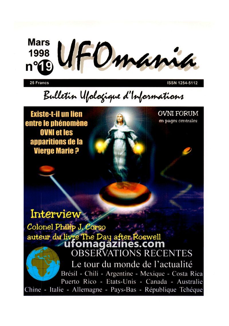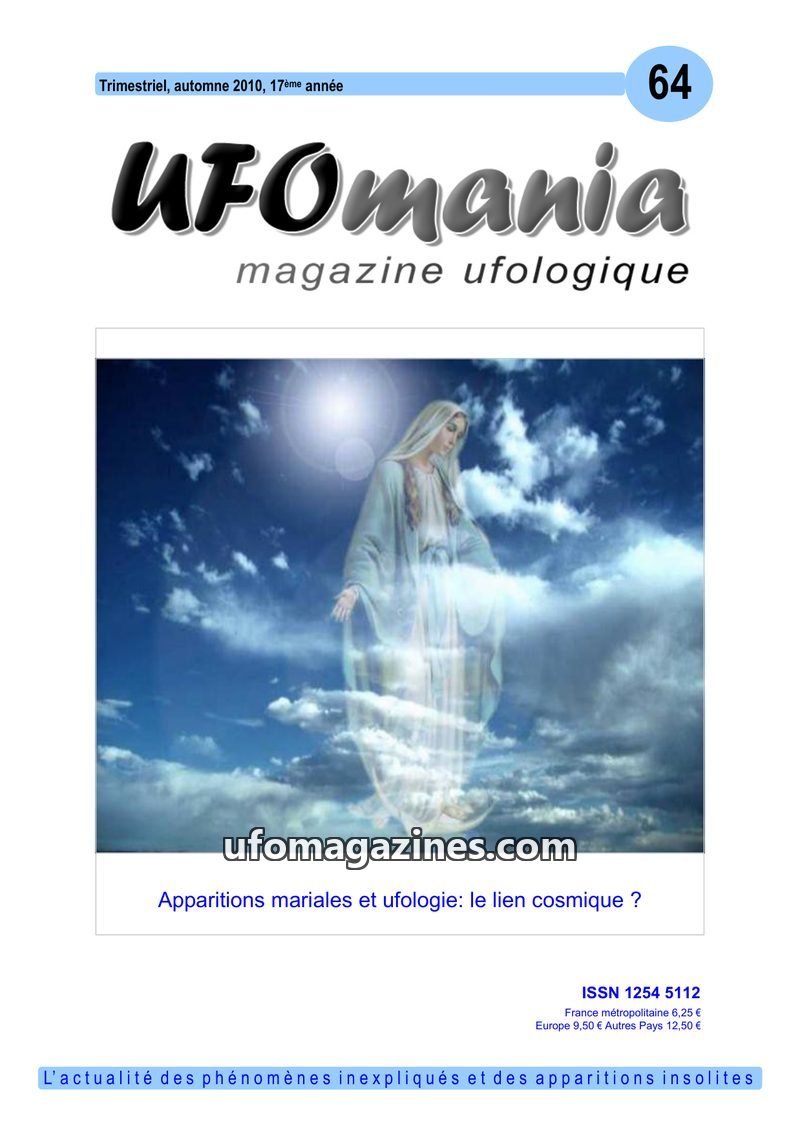 This issue of UFOmania delves into the controversial connection between UFO phenomena and Marian apparitions, suggesting that UFOs may mimic religious visions to deceive humanity.