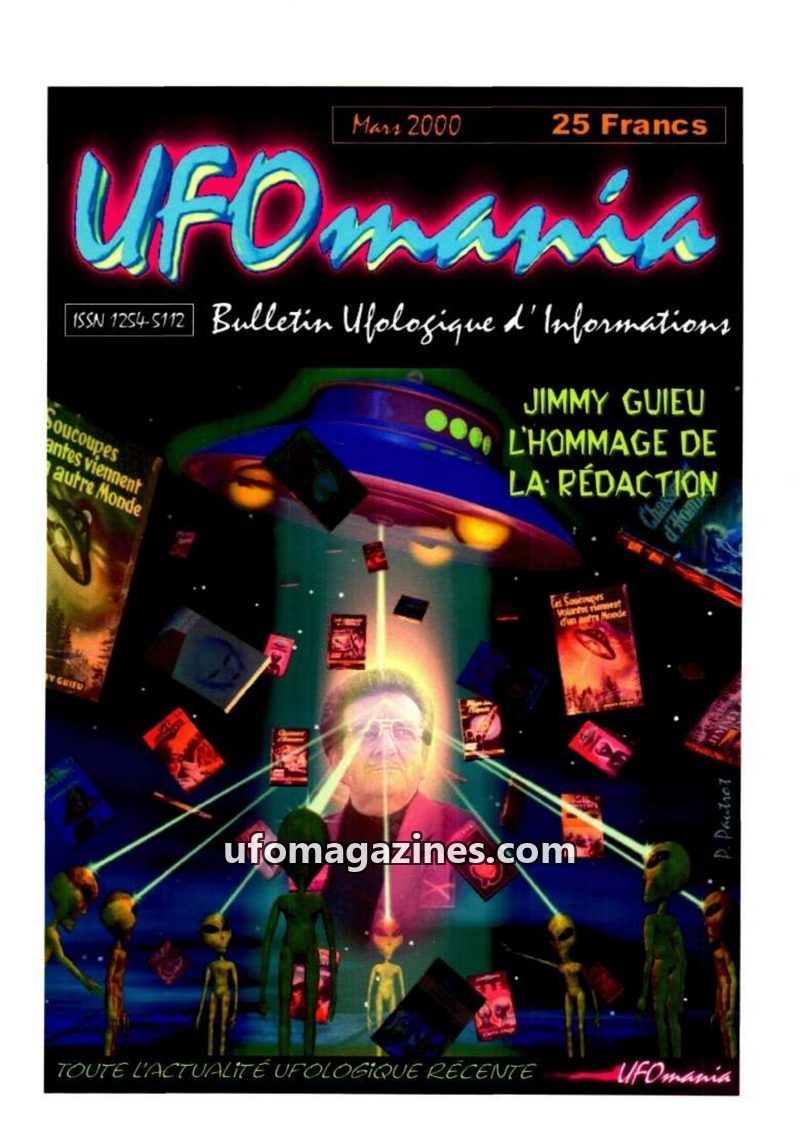 This issue of UFOmania (March 2000, n°26) is dedicated to a tribute to the late Jimmy Guieu, a prominent ufologist and science-fiction writer who passed away on January 1, 2000. Th
