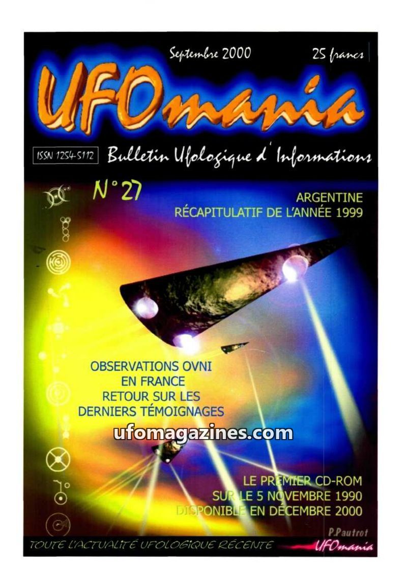 This issue of UFOmania, dated September 2000, focuses on a recap of UFO observations in Argentina for 1999, presented in two parts. It also covers recent UFO sightings in France du