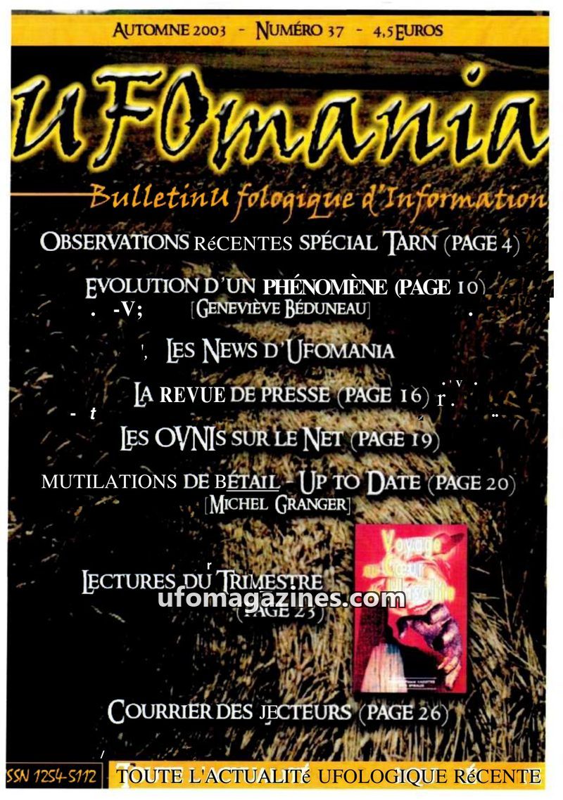 This issue of UFOmAnia, published in Autumn 2003, focuses on recent UFO observations, particularly in the Tarn region of France. It includes detailed witness testimonies of sightin
