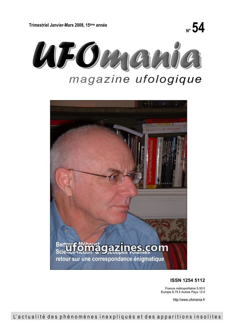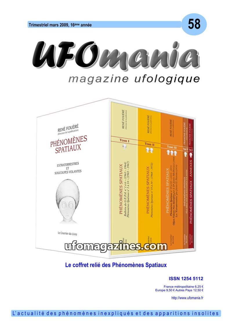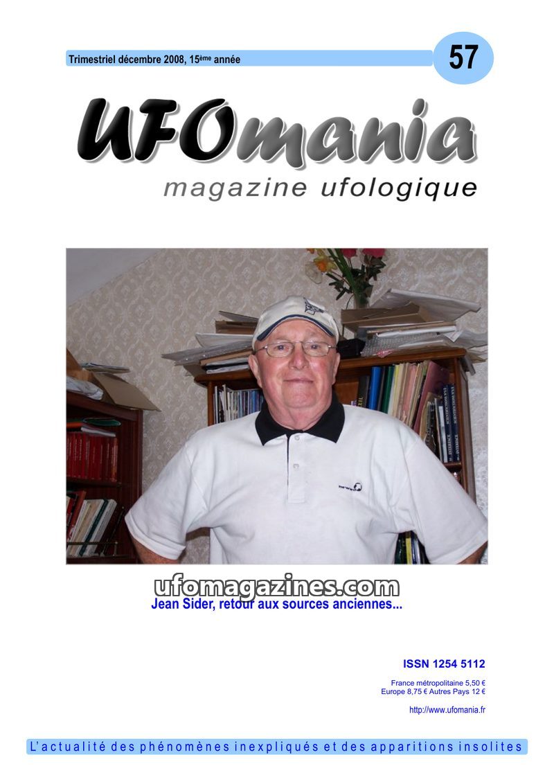This issue of UFOmania magazine (December 2008) features a dossier on prolific ufologist Jean Sider, exploring his research into ancient sources and his theories on UFOs as 'materi