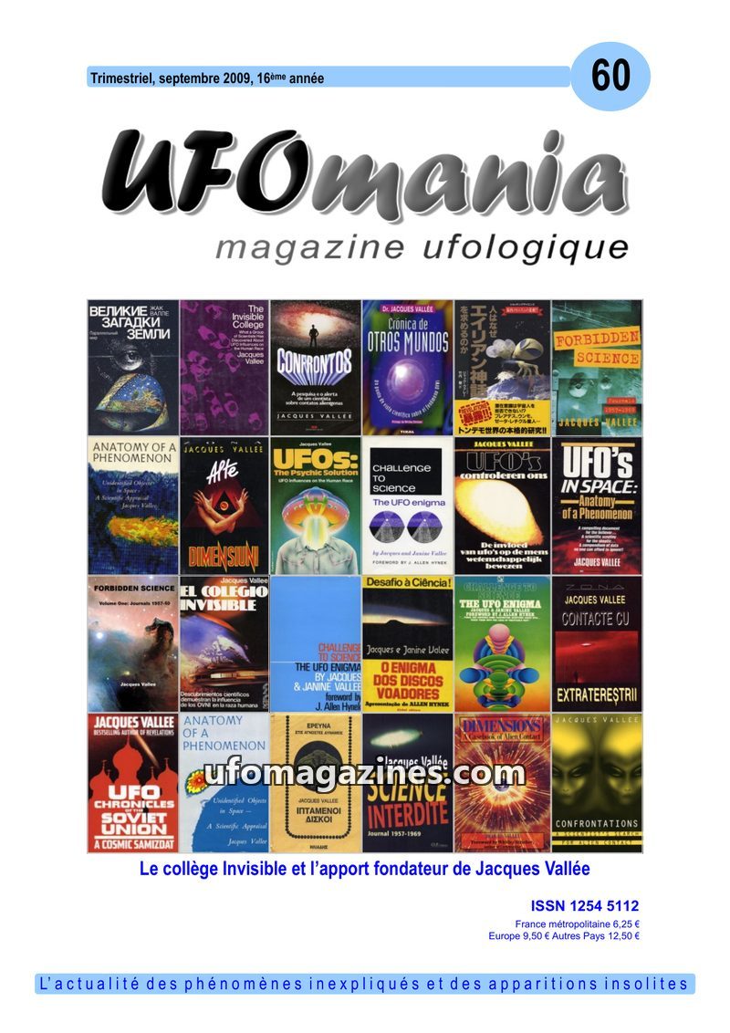 This issue of UFOmania magazine, number 60 from September 2009, is dedicated to the work of Jacques Vallée and the 'Invisible College'. It highlights Vallée's sociological approach