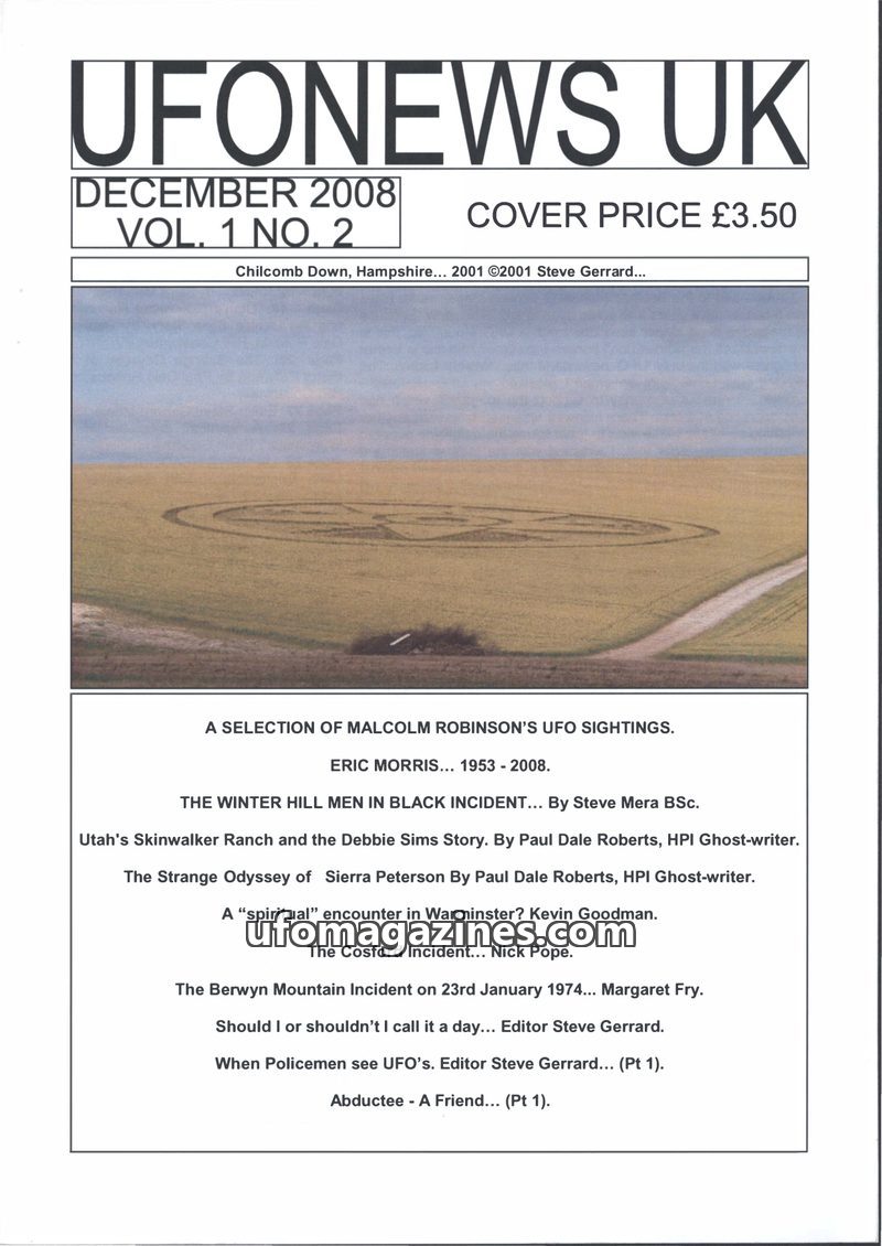 This issue of UFONEWS UK covers a range of UFO-related topics, including recent sightings in Hampshire, the phenomenon of time warps, and an interview with a former Man in Black. I