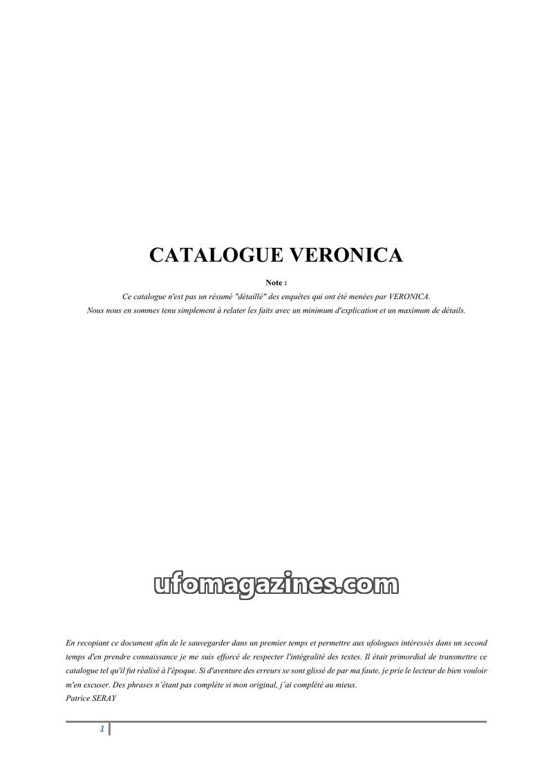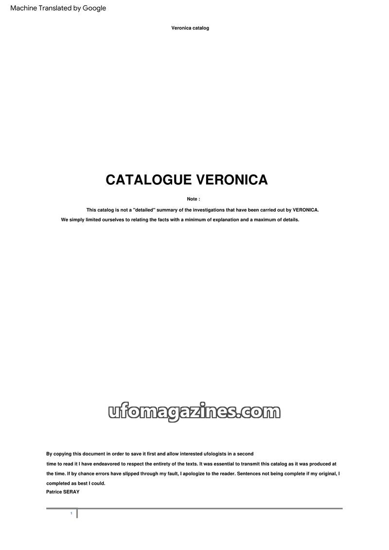 Catalogue Veronica - retyped by Patrice Seray - automated English translation